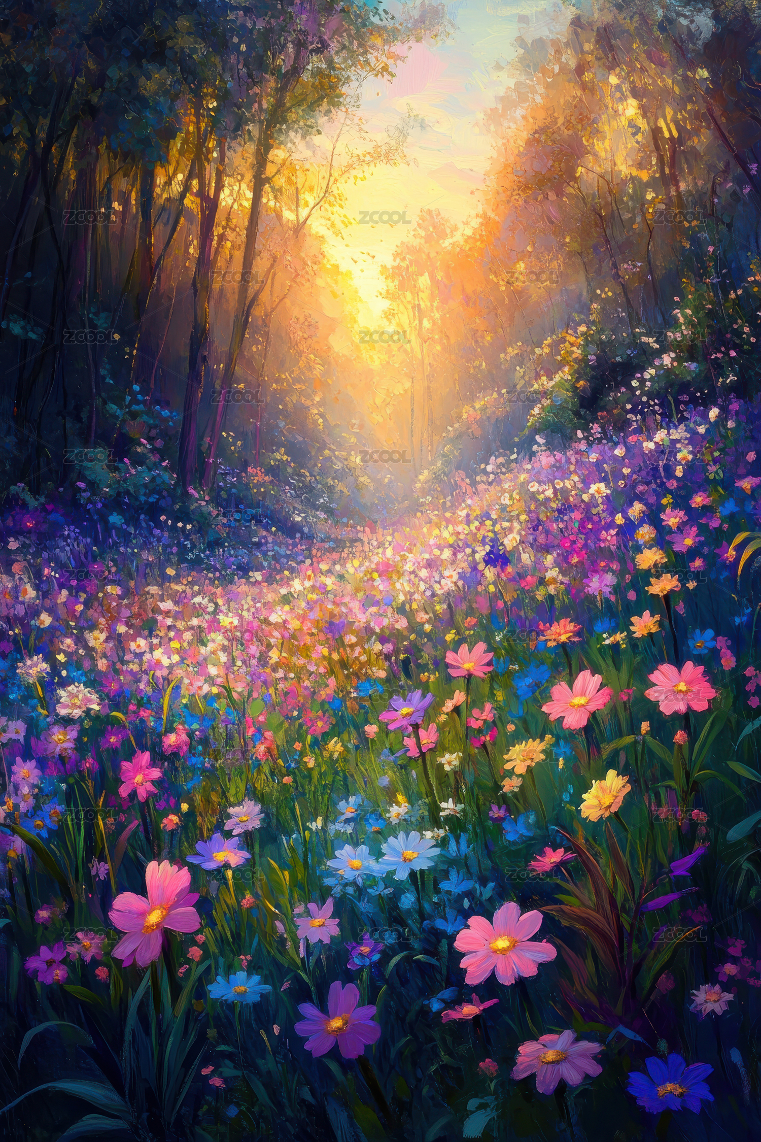 金色阳光下的烂漫花田