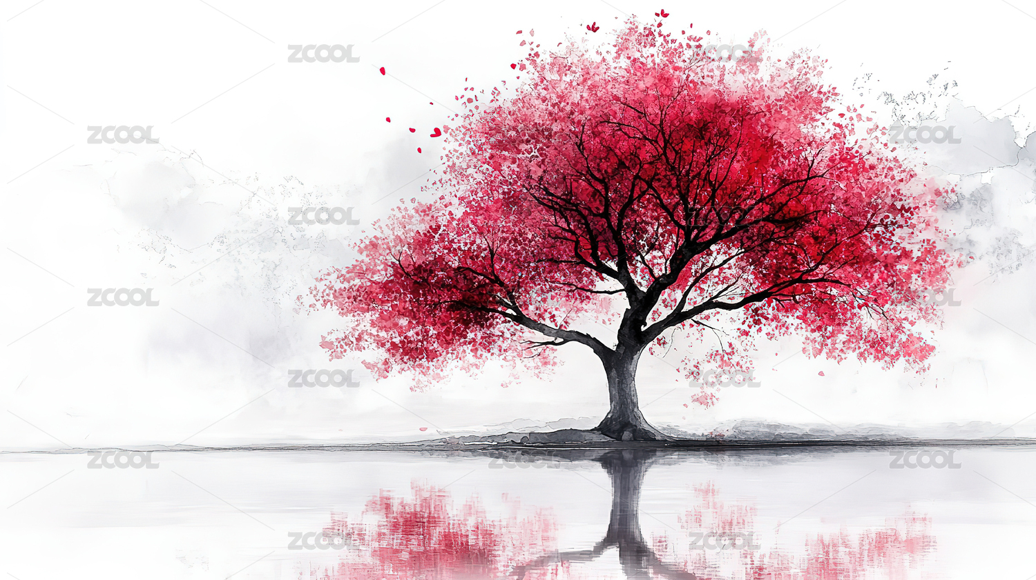 传统,中国,梅花,水墨,水墨画,山水画,春,冰,雪,粉红