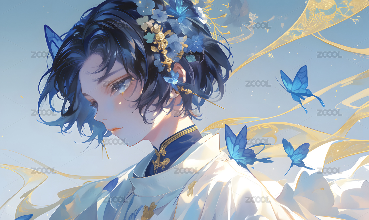 女孩,人像,少女,精致,面容,蝴蝶,伤心,悲伤