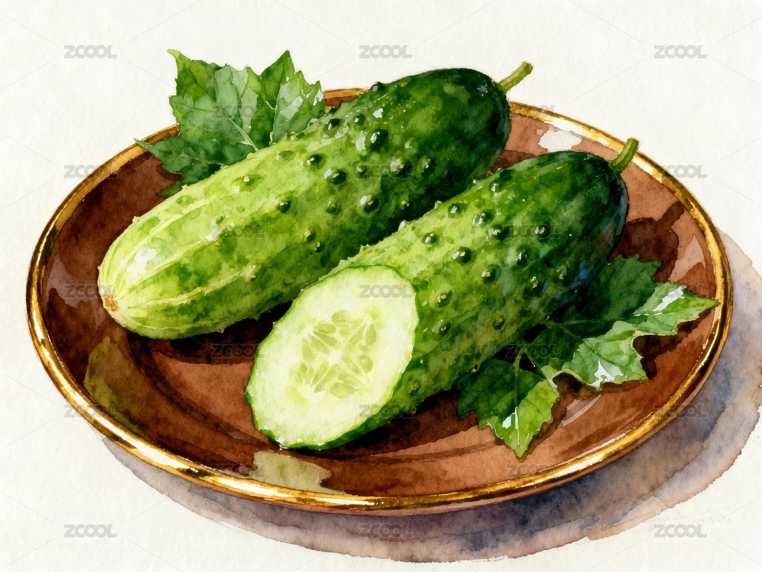 水彩画黄瓜清新自然