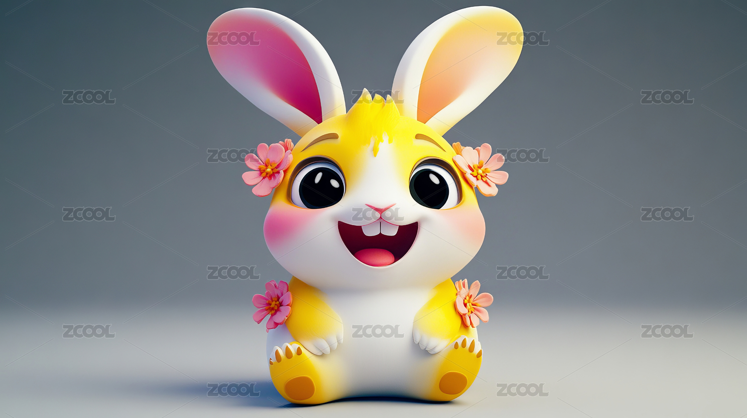 渲染,黄色,清新,兔子,可爱,卡通,温暖,3D,插画,治愈