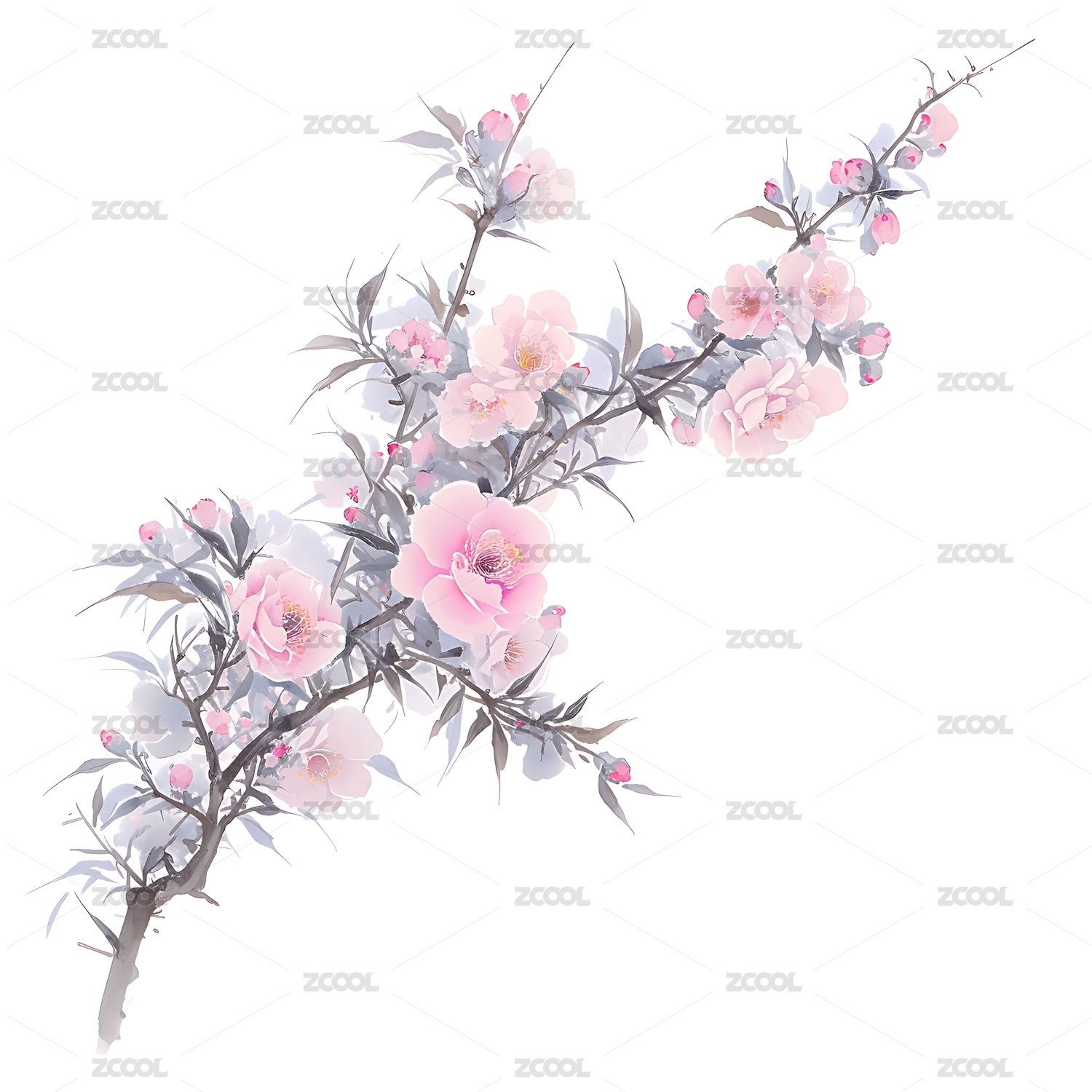 桃花,春天,花瓣,桃树,树叶,花朵,插画