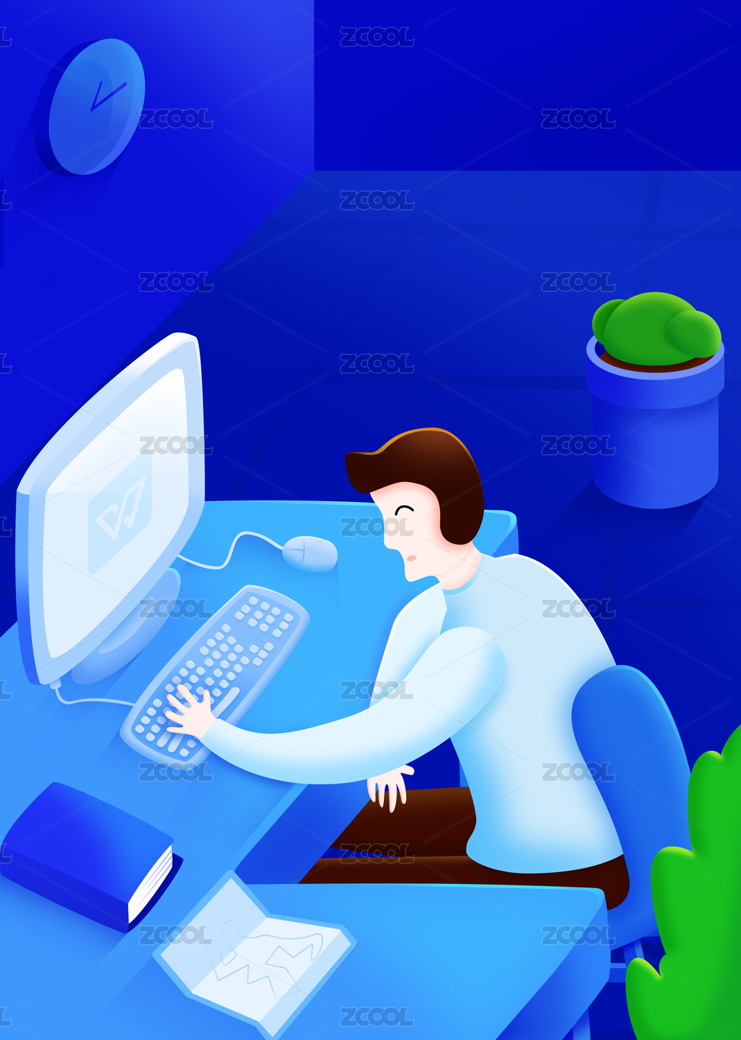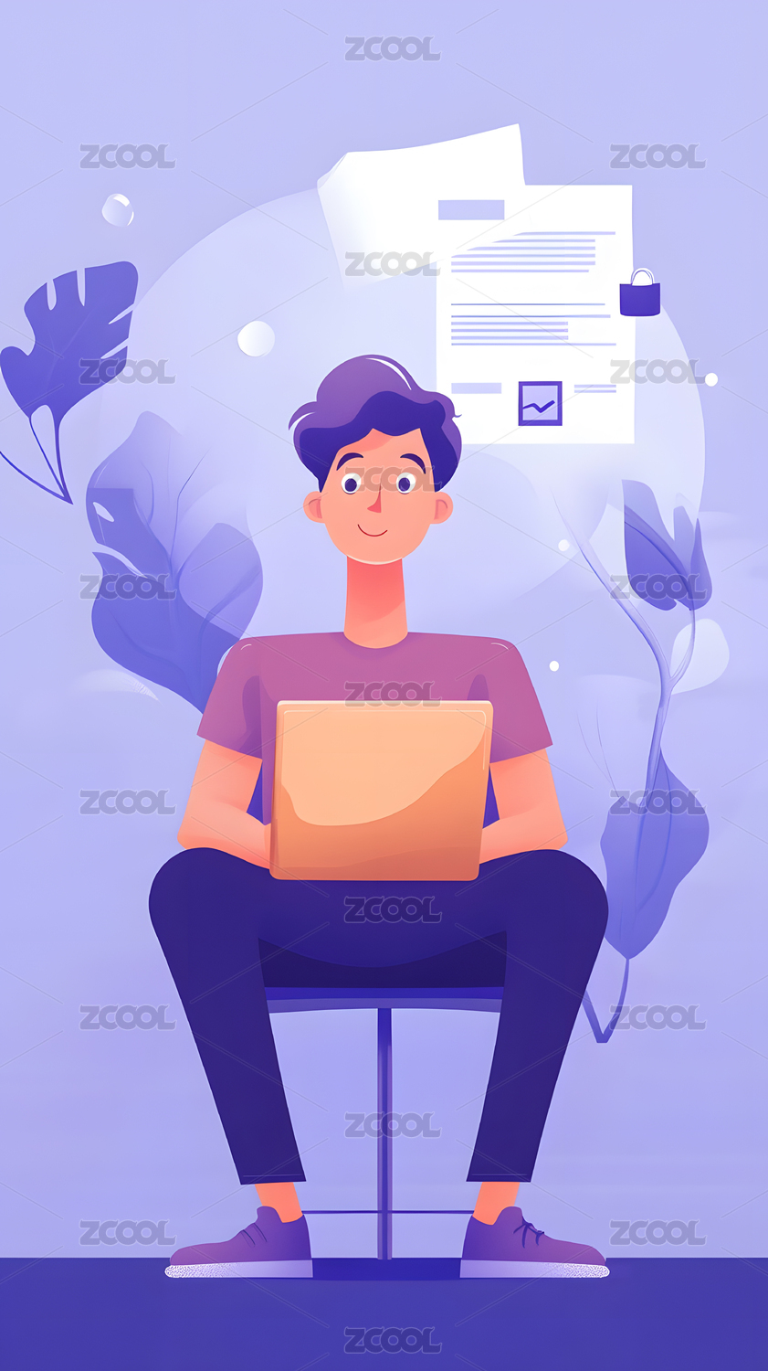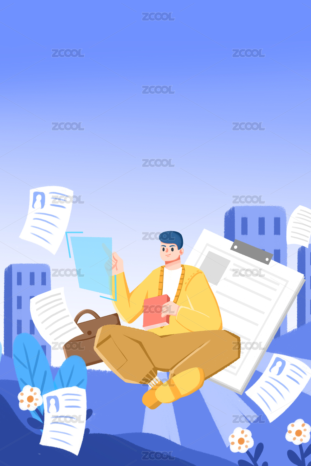 卡通手绘HR职场求职白领晋升闪屏海报插画