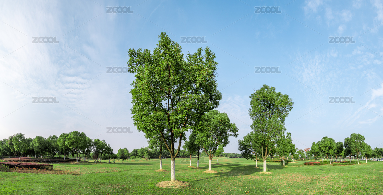 中国江苏南京阳光照射宁静有树木的绿色草地