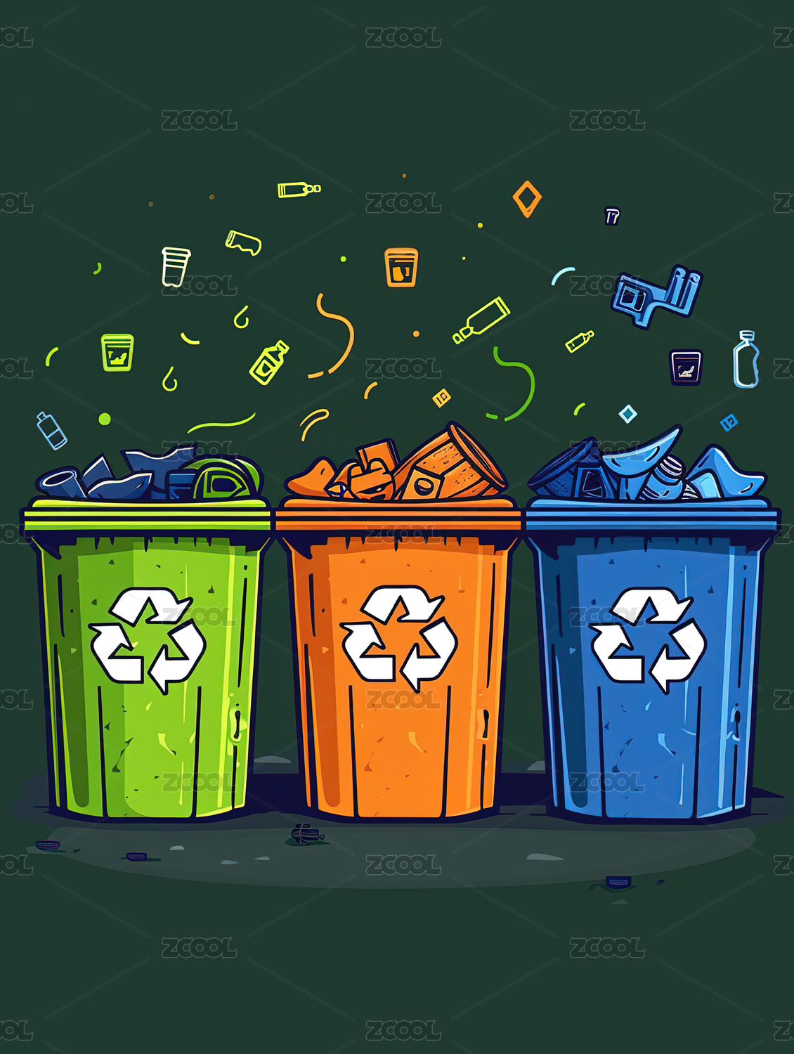 设计,塑料,垃圾分类,垃圾,上海,杭州,蓝天,简约,平面,插画