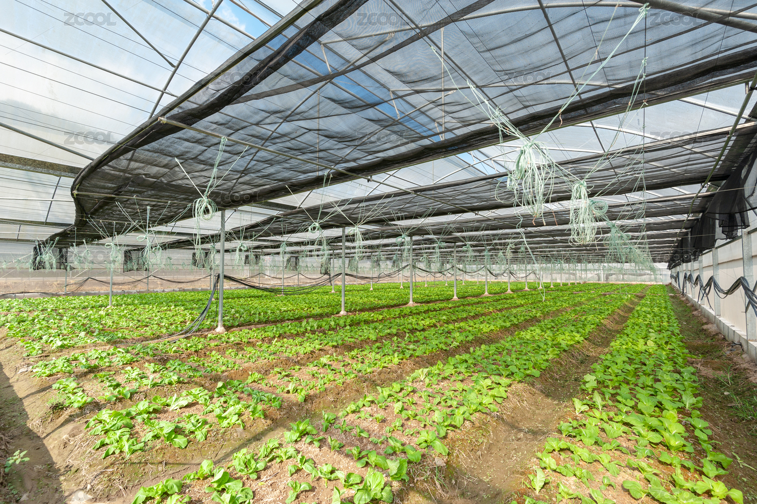 在郊区大棚里种植的一大片蔬菜