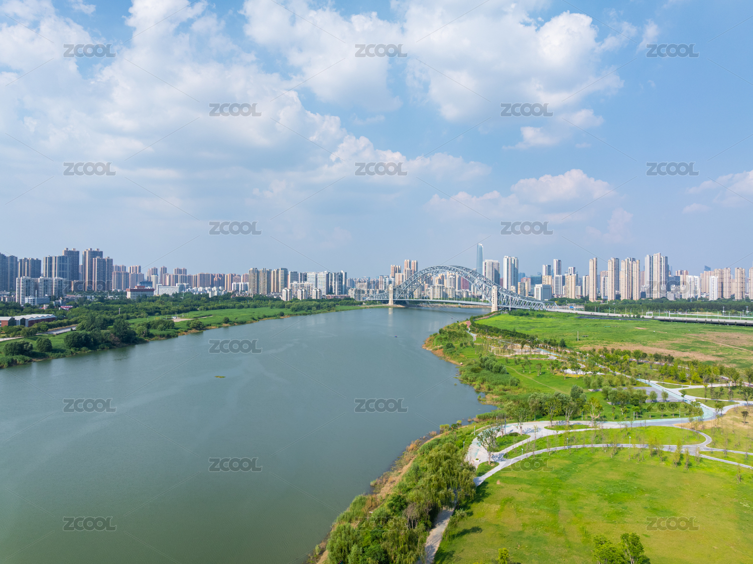 辽宁沈阳城市建筑浑河大桥盛京剧院航拍