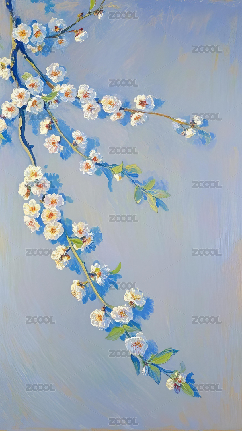 浅蓝色唯美梦幻墙上的花朵花束背景