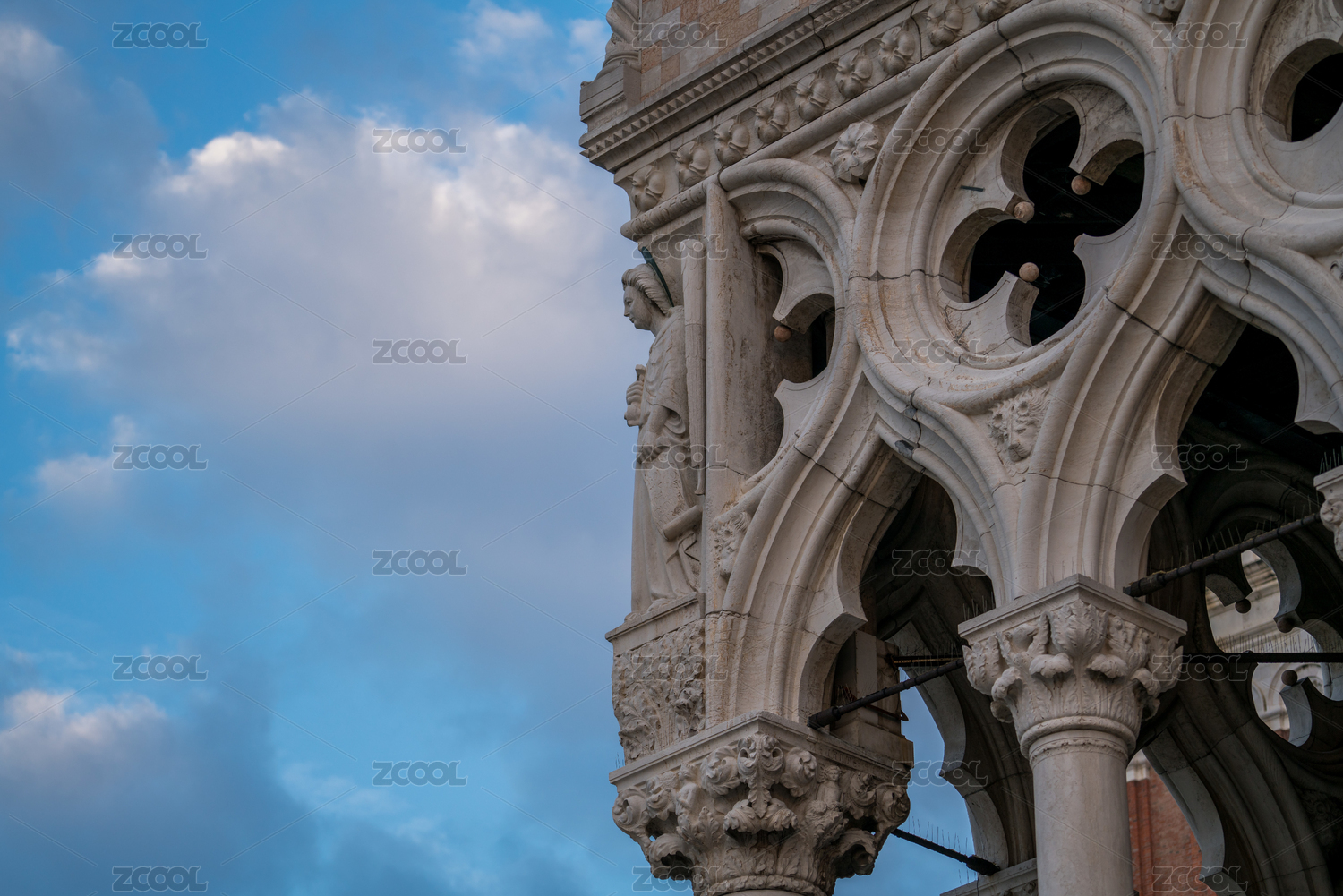 意大利威尼斯老城文艺复兴风格建筑与雕像