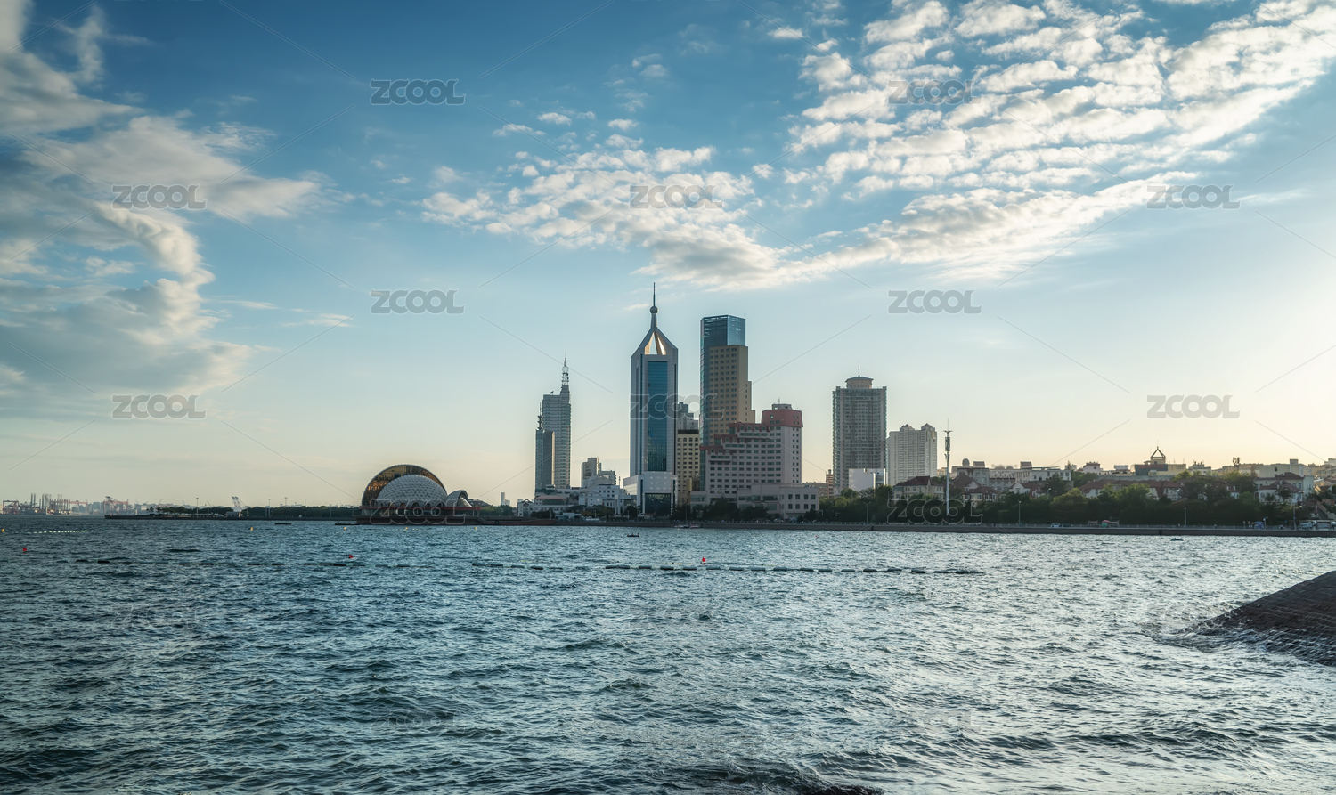 中国山东青岛栈桥海滨海岸城市建筑风光