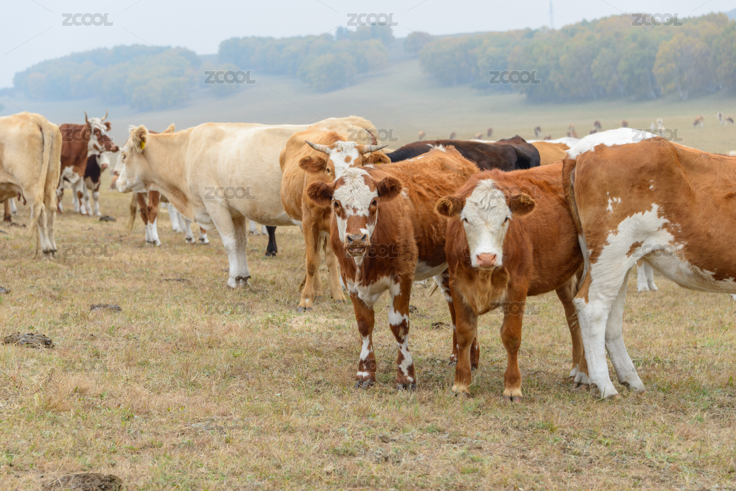 牧场绿地草原上的牛群