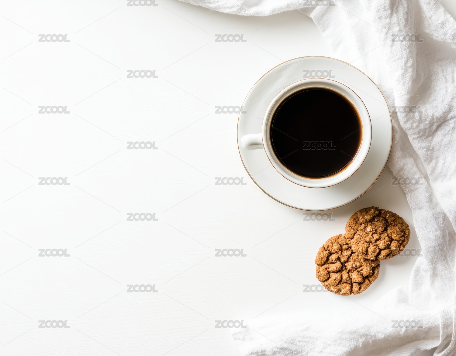 简约白布黑咖啡配饼干