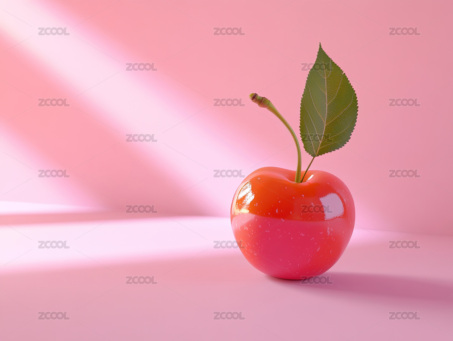 桌上带叶粉红色的桃子模型3D卡通立体插画