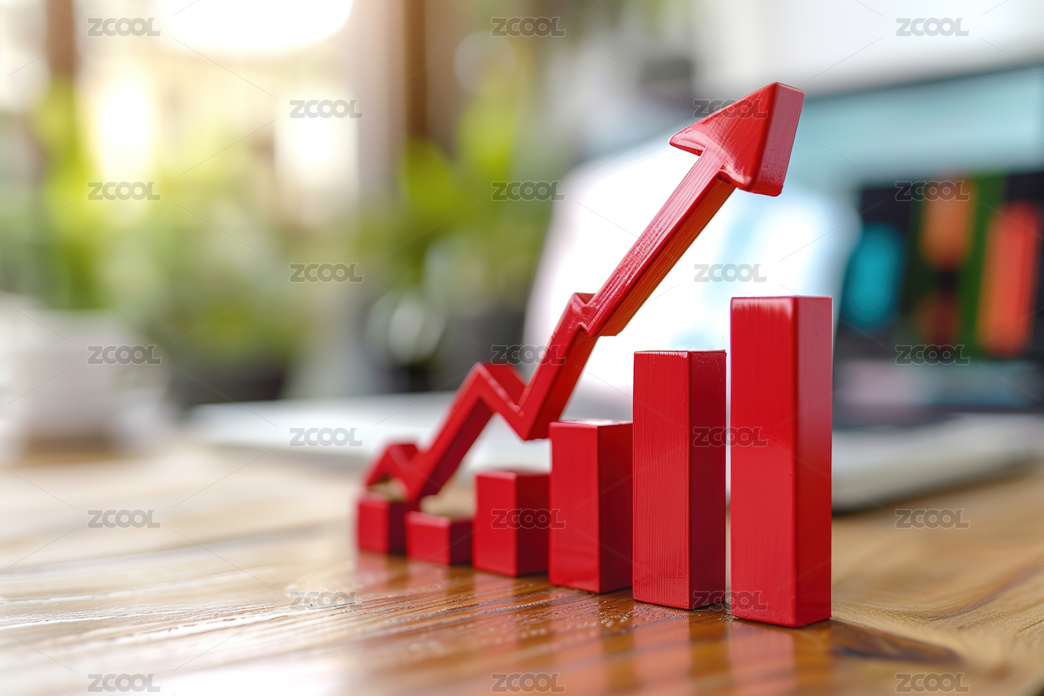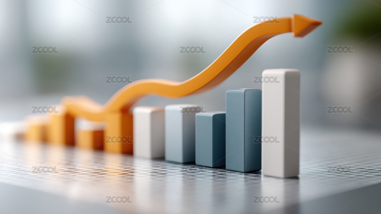 柱状图与上扬箭头展现增长态势