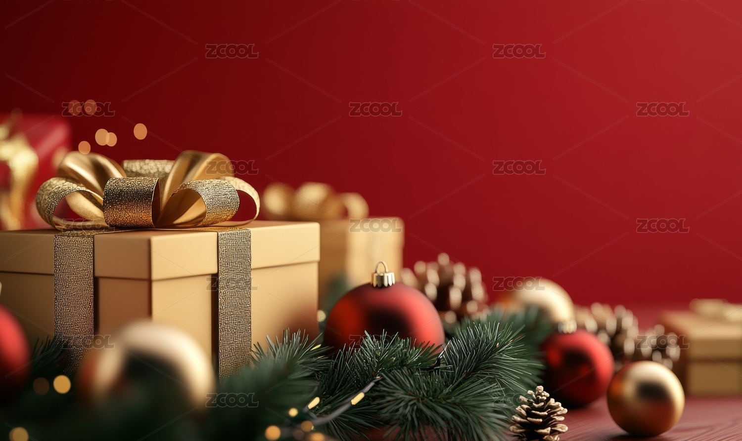 红色的圣诞礼物和装饰品