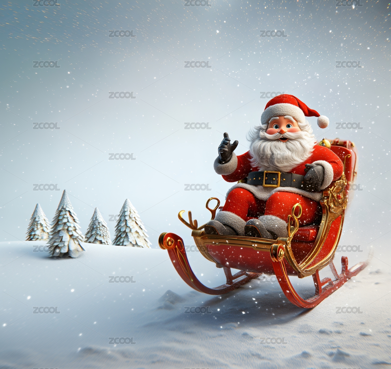 3D圣诞节圣诞老人坐在雪橇车上招手