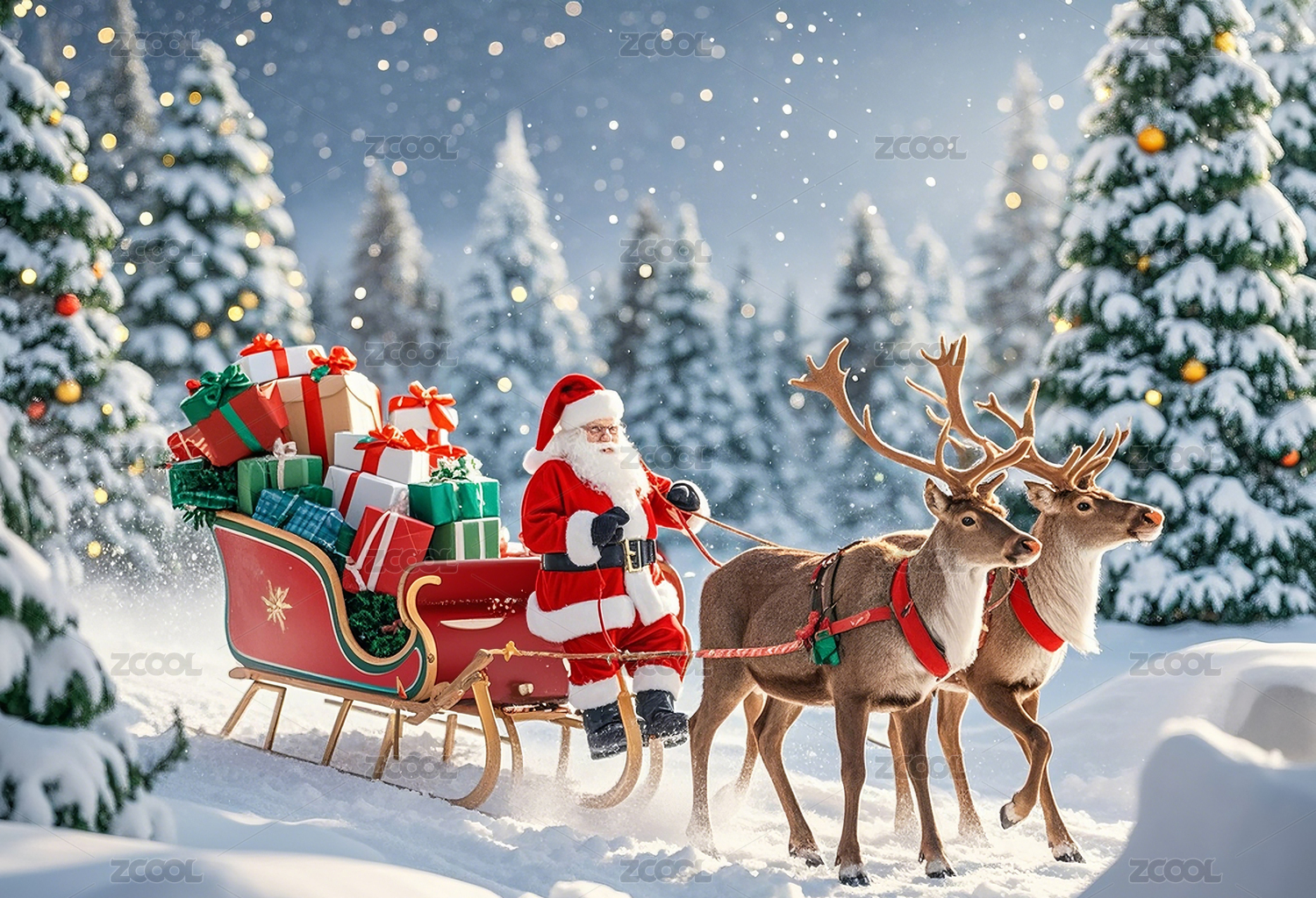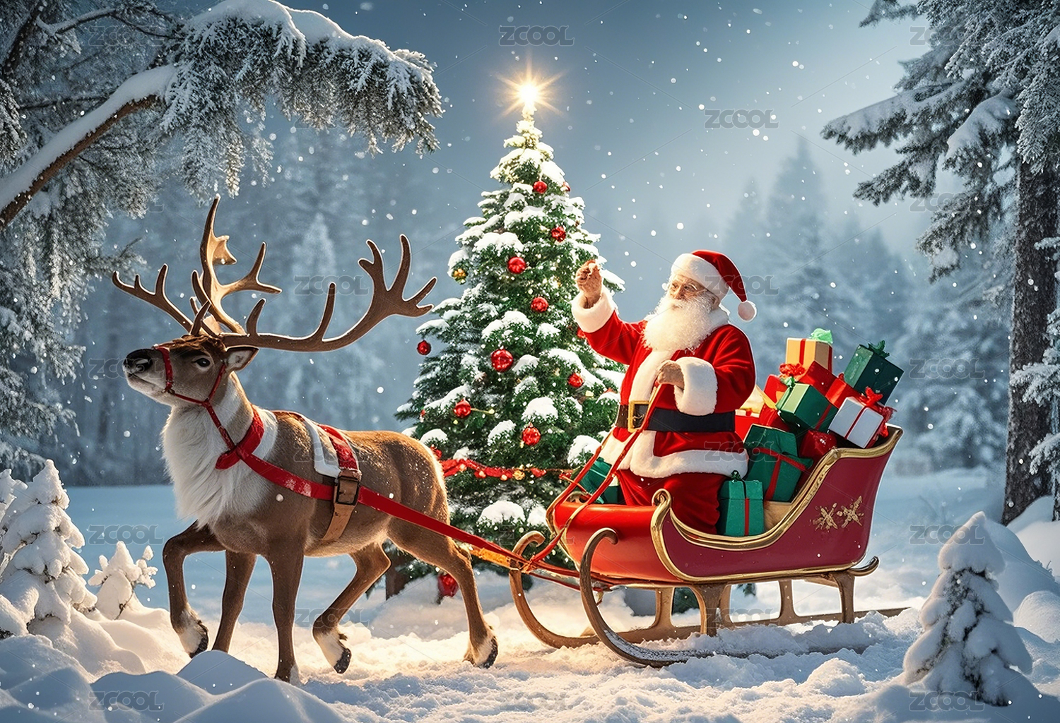 圣诞老人和驯鹿的雪橇