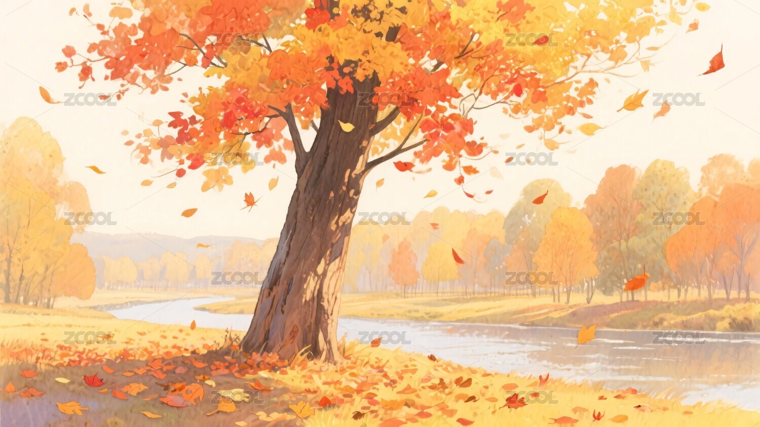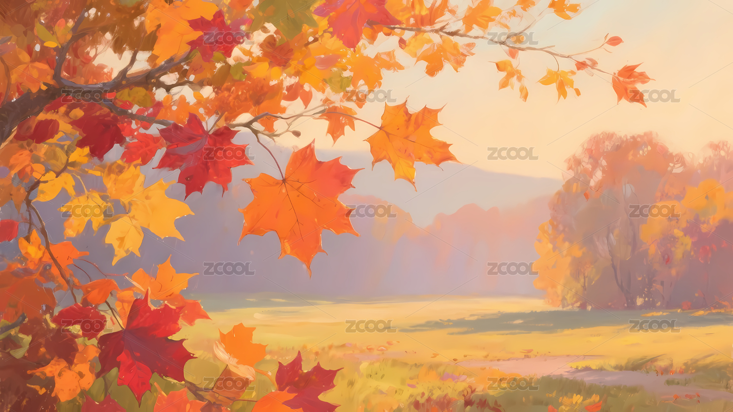 秋天白天阳光明亮的金黄色原野3D插画背景