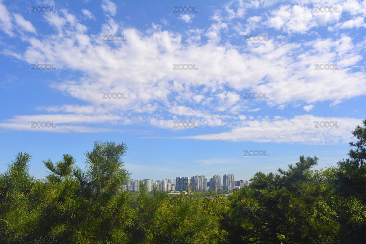 城市森林公园绿树蓝天美景,中国北京奥林匹克森林公园