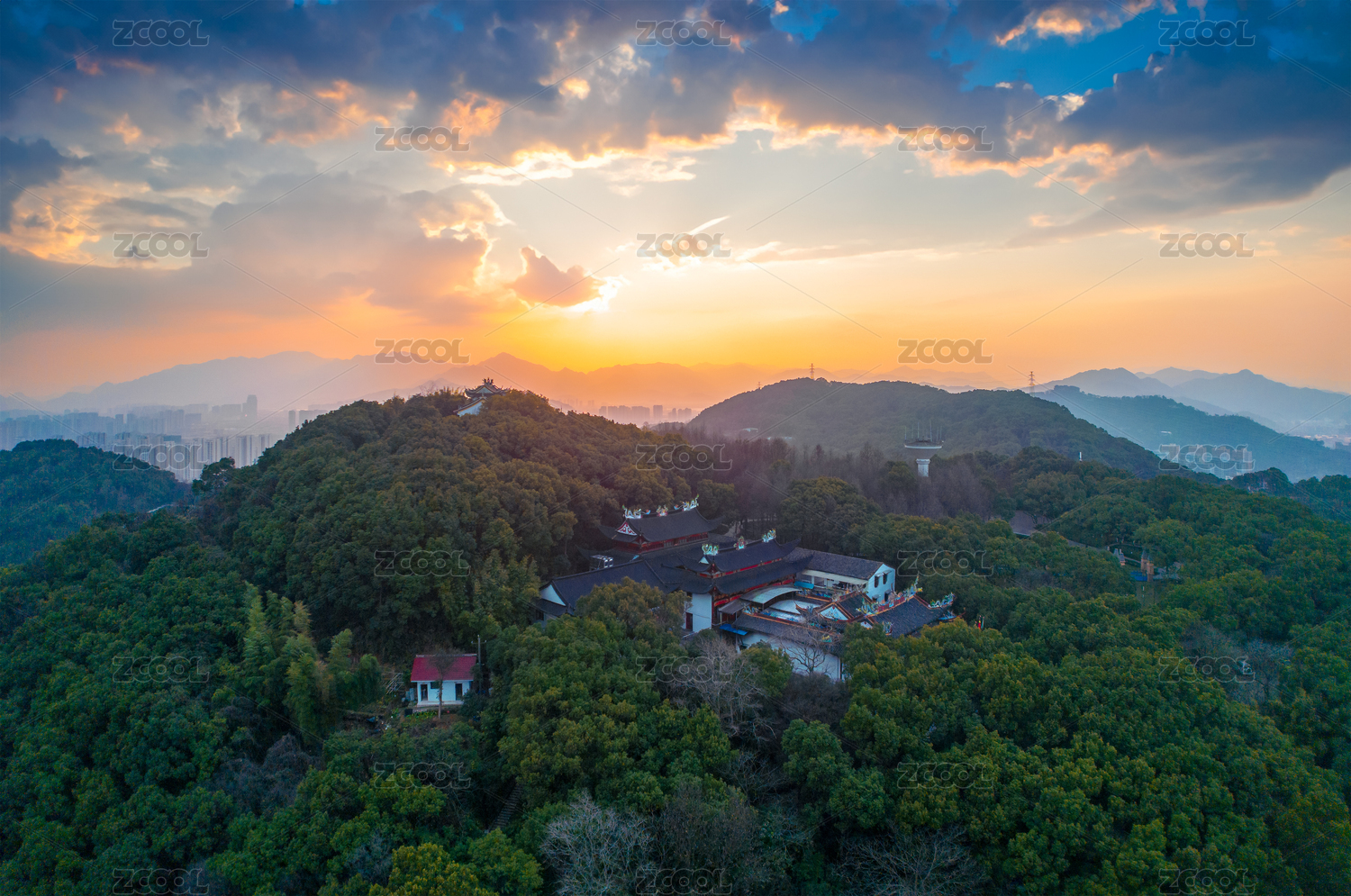 浙江省湖州市莫干山云雾缭绕山间村落航拍