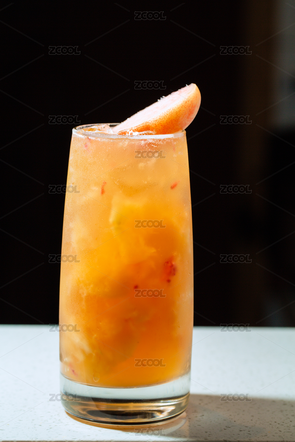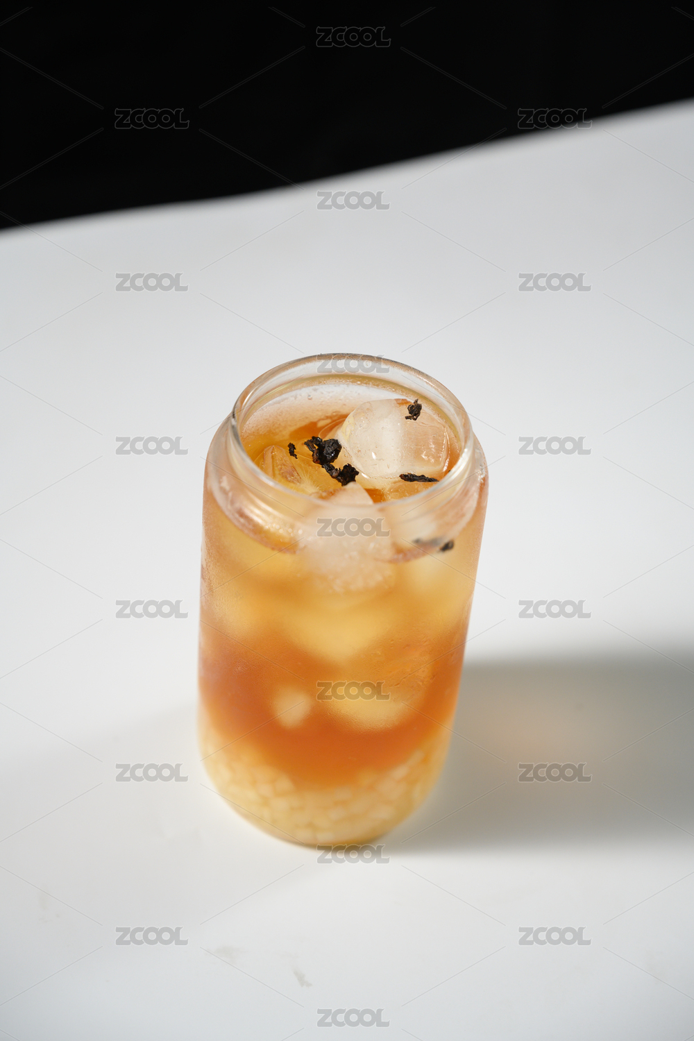 桌面上的杯子里的美味可口的冰蜜桃乌龙茶