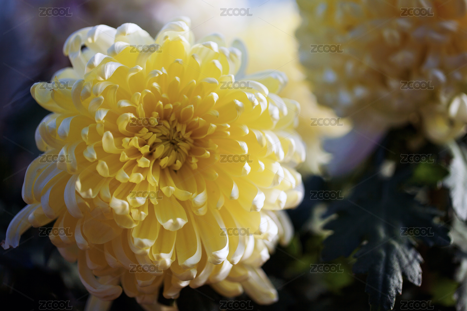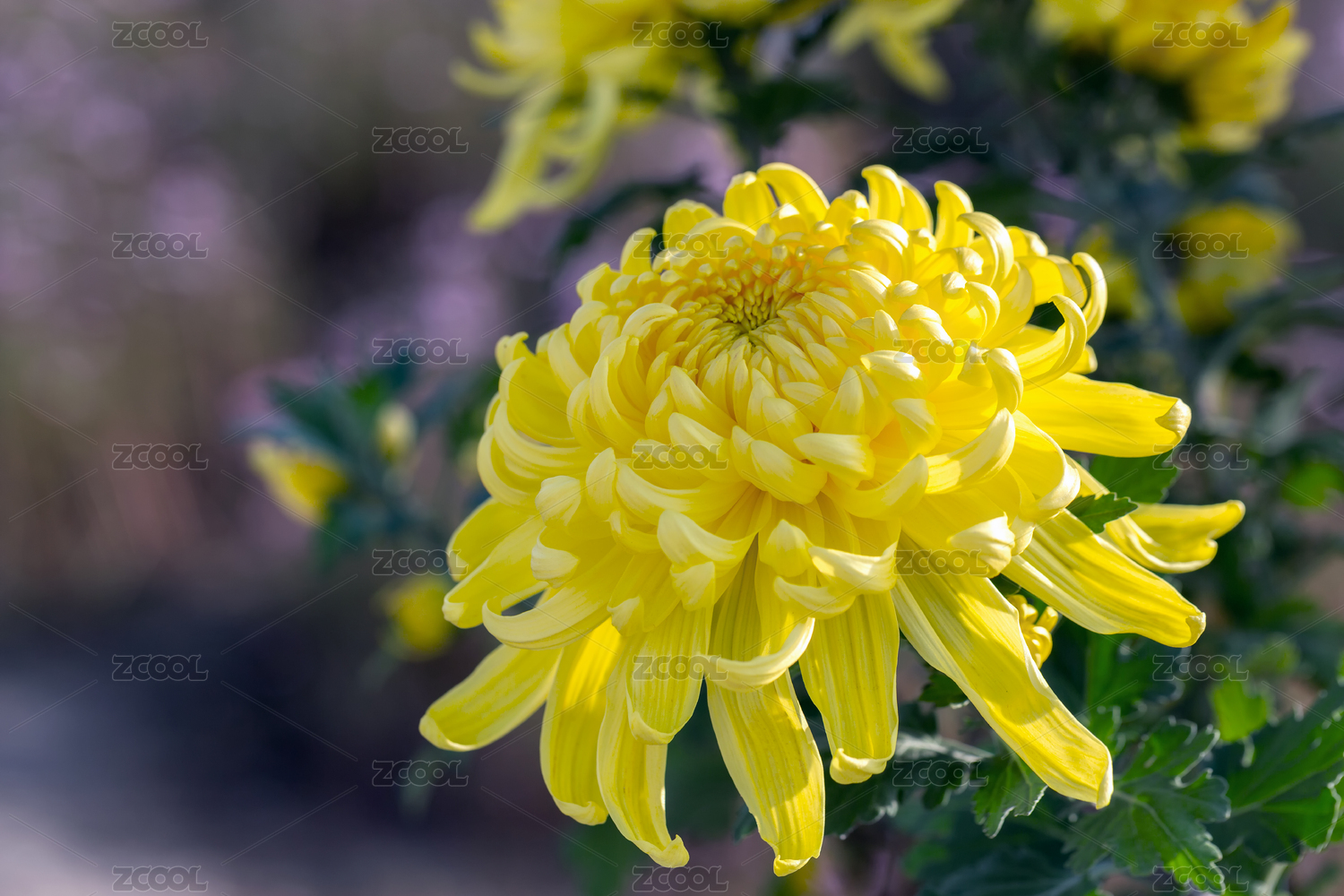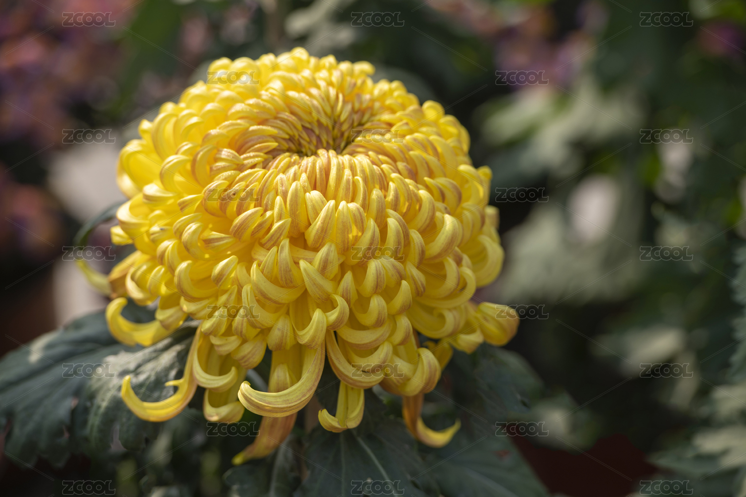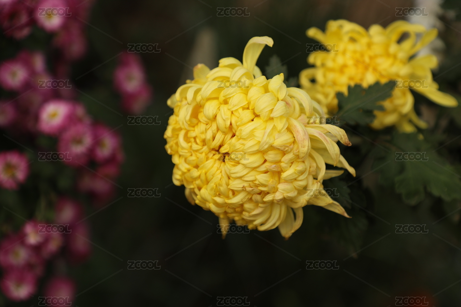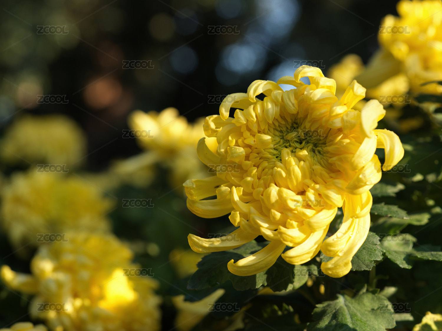 秋天的公园里颜色鲜艳的菊花在阳光下绽放