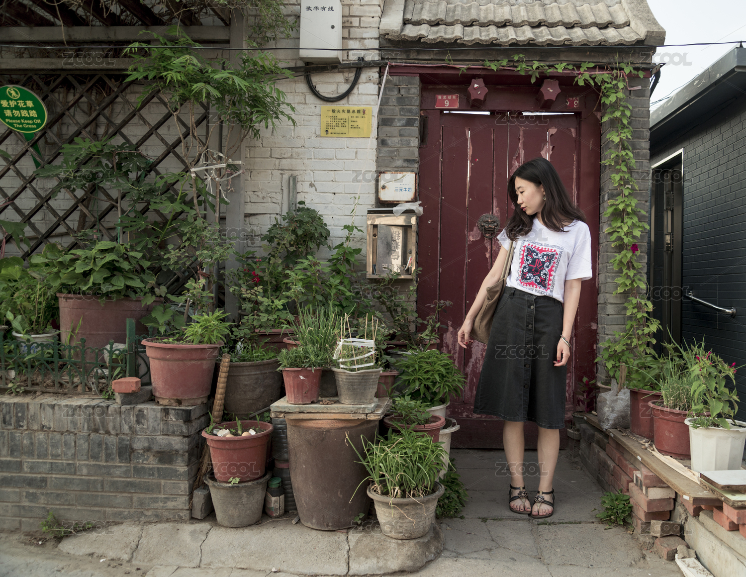 北京胡同里的花和女孩