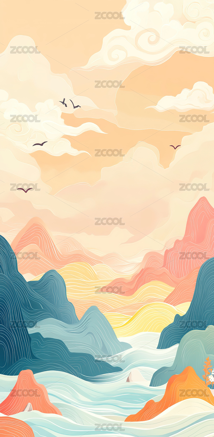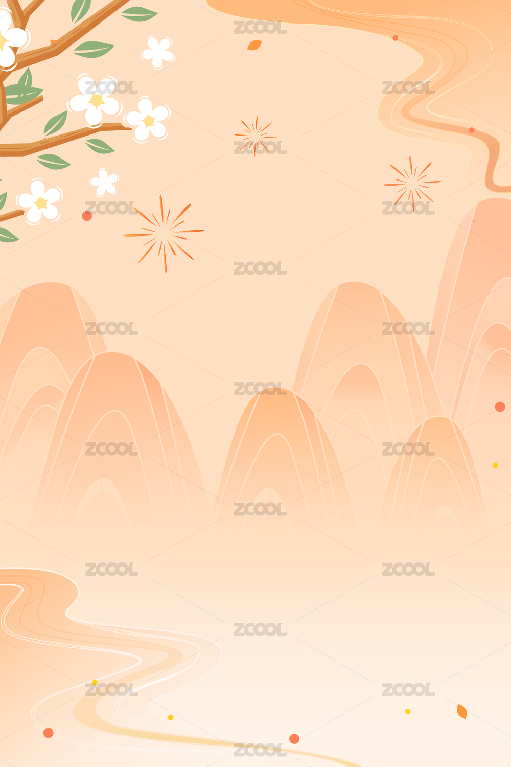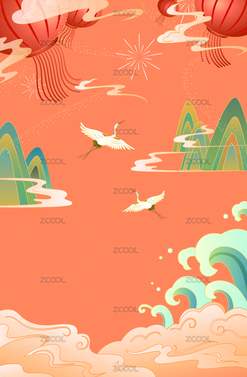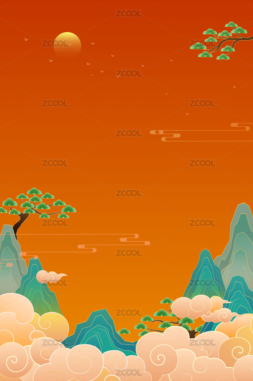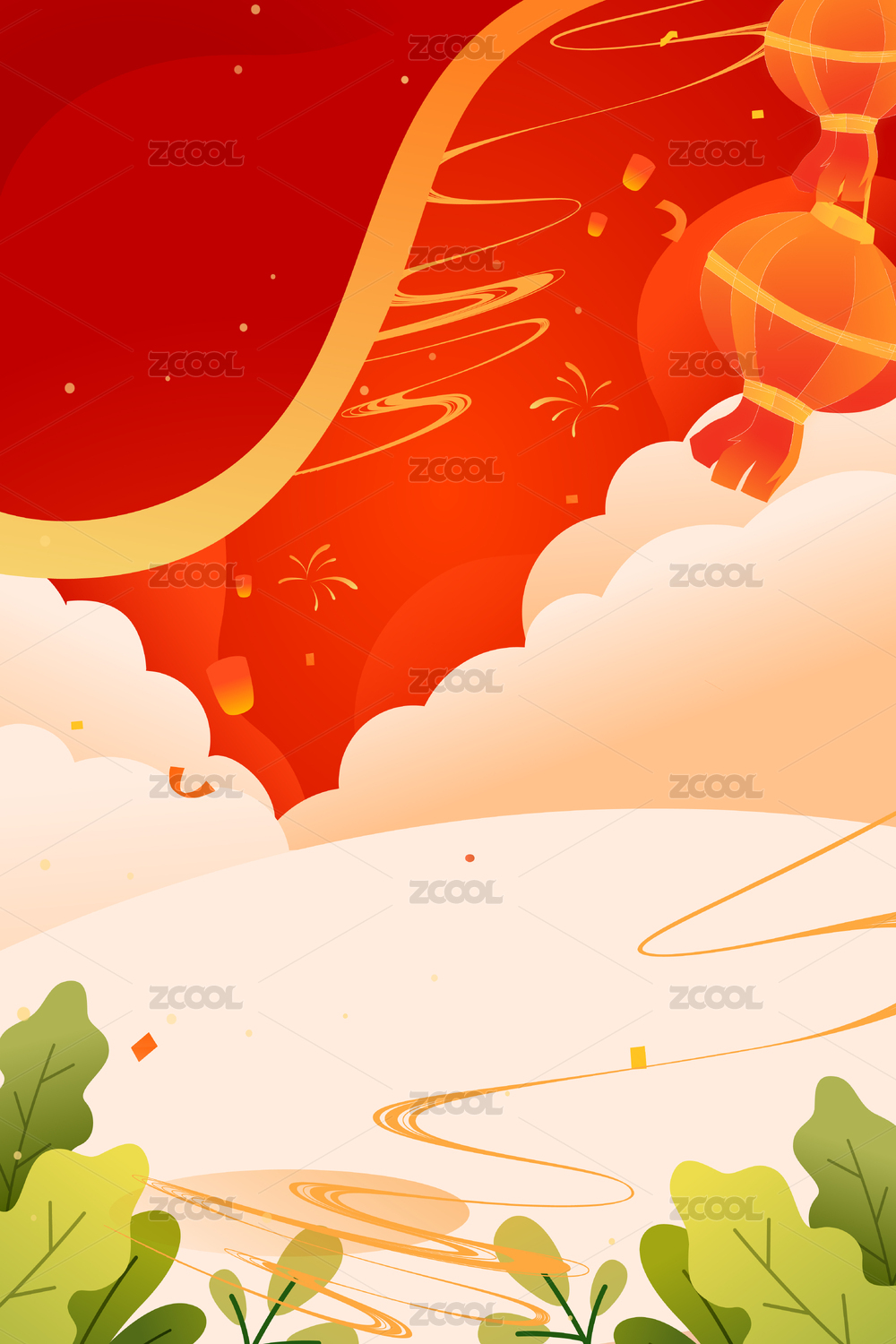 国潮风新年春节题材喜庆山水祥云插画背景插画