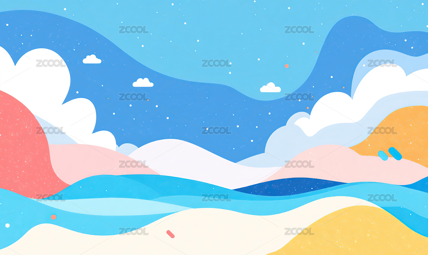 卡通手绘渐变江水海水风景插画