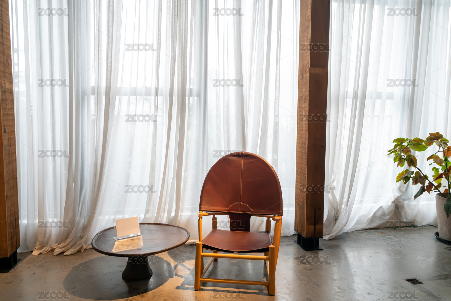 色调清新淡雅的房间和摆放在角落的绿植
