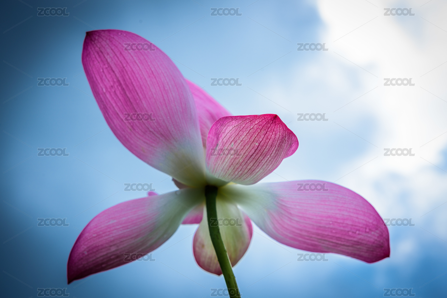 蓝天中绽放的粉荷花