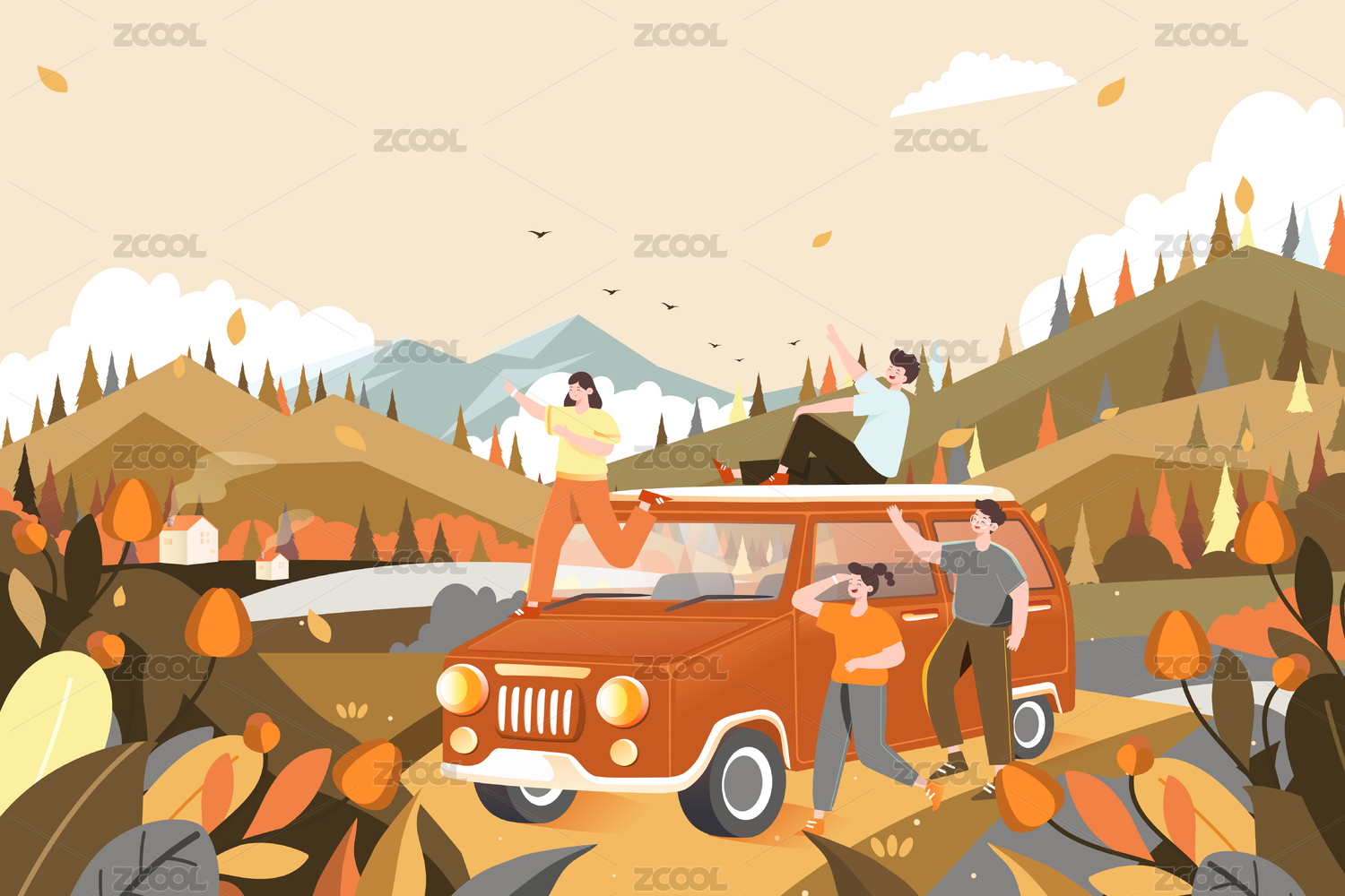 卡通,渐变,扁平,插画,插图,背景,旅行,旅游,生活,家人
