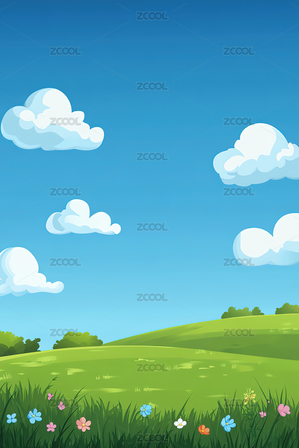 春天蓝天白云矢量插画背景