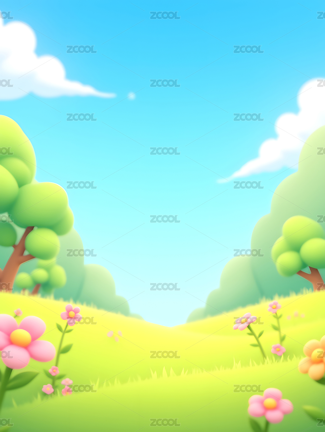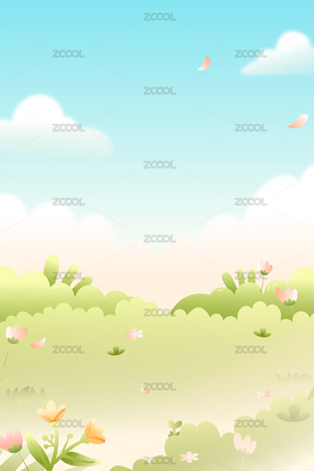 3D春天的草地花朵三维自然背景