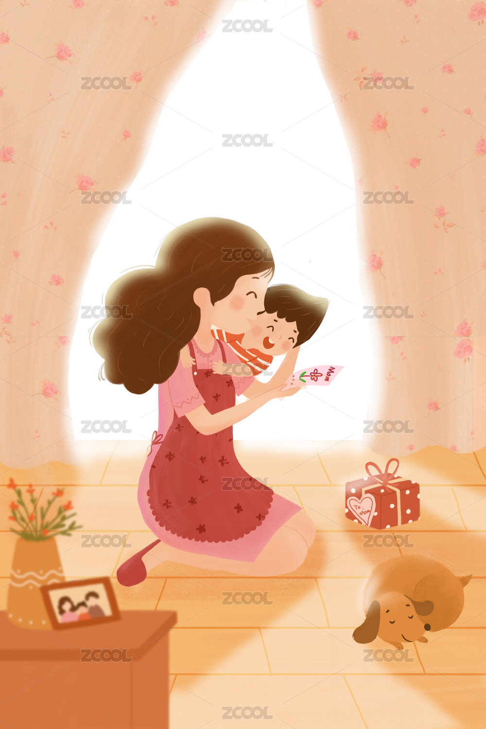 生日,在室内,问候,小孩,爱,插图,玩具,庆典,女人,妈妈