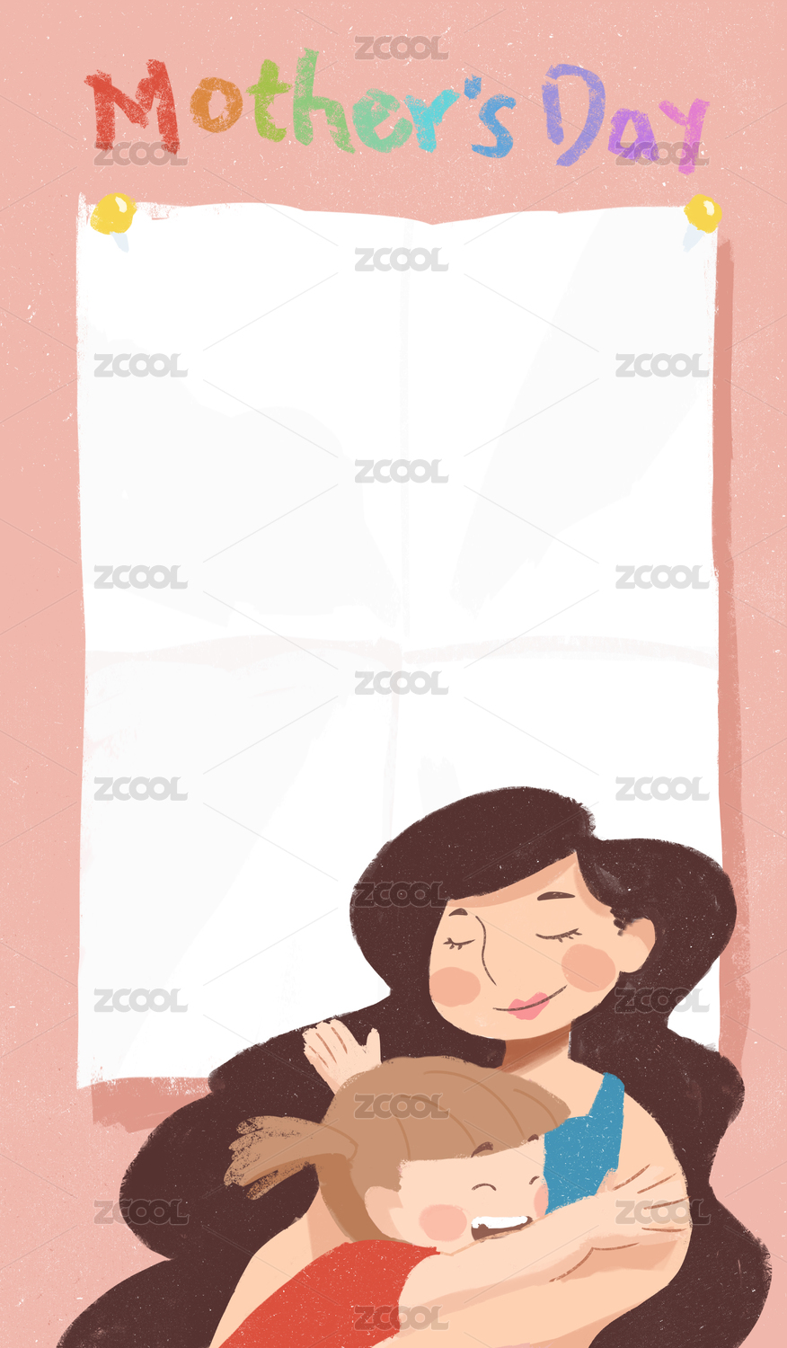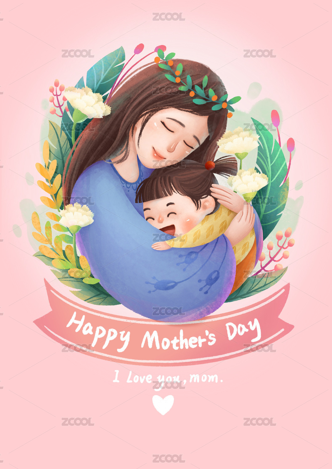 母亲节小女孩吻妈妈给妈妈送花矢量扁平插画