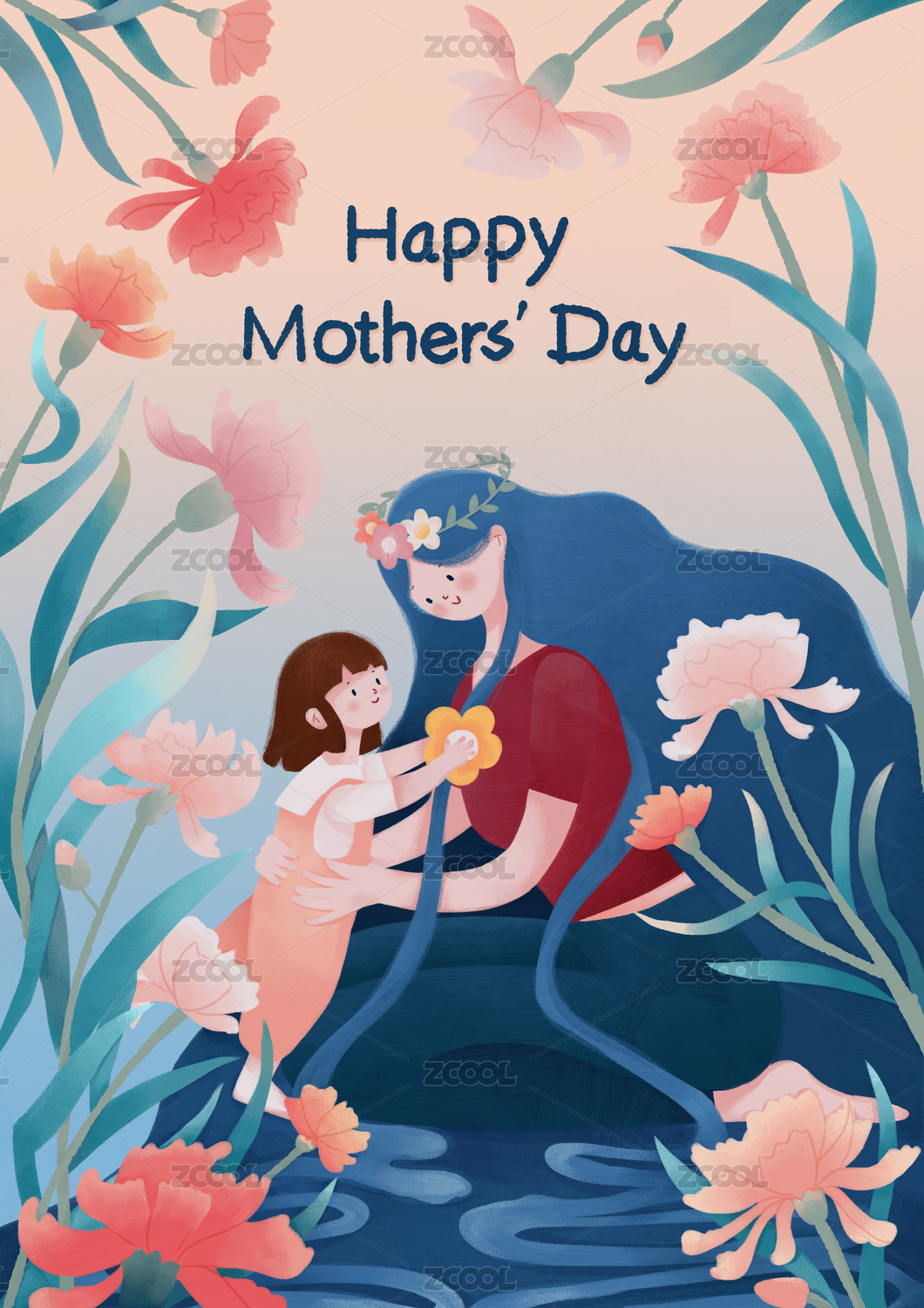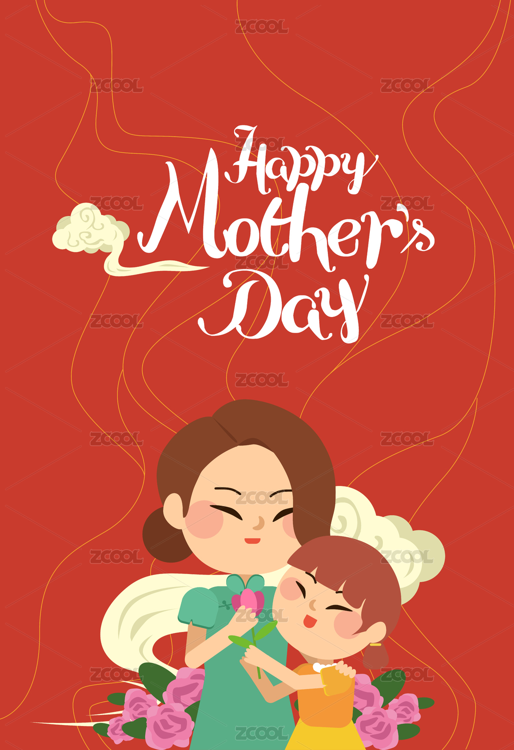 母亲节小女孩把花递给穿着旗袍的妈妈竖版
