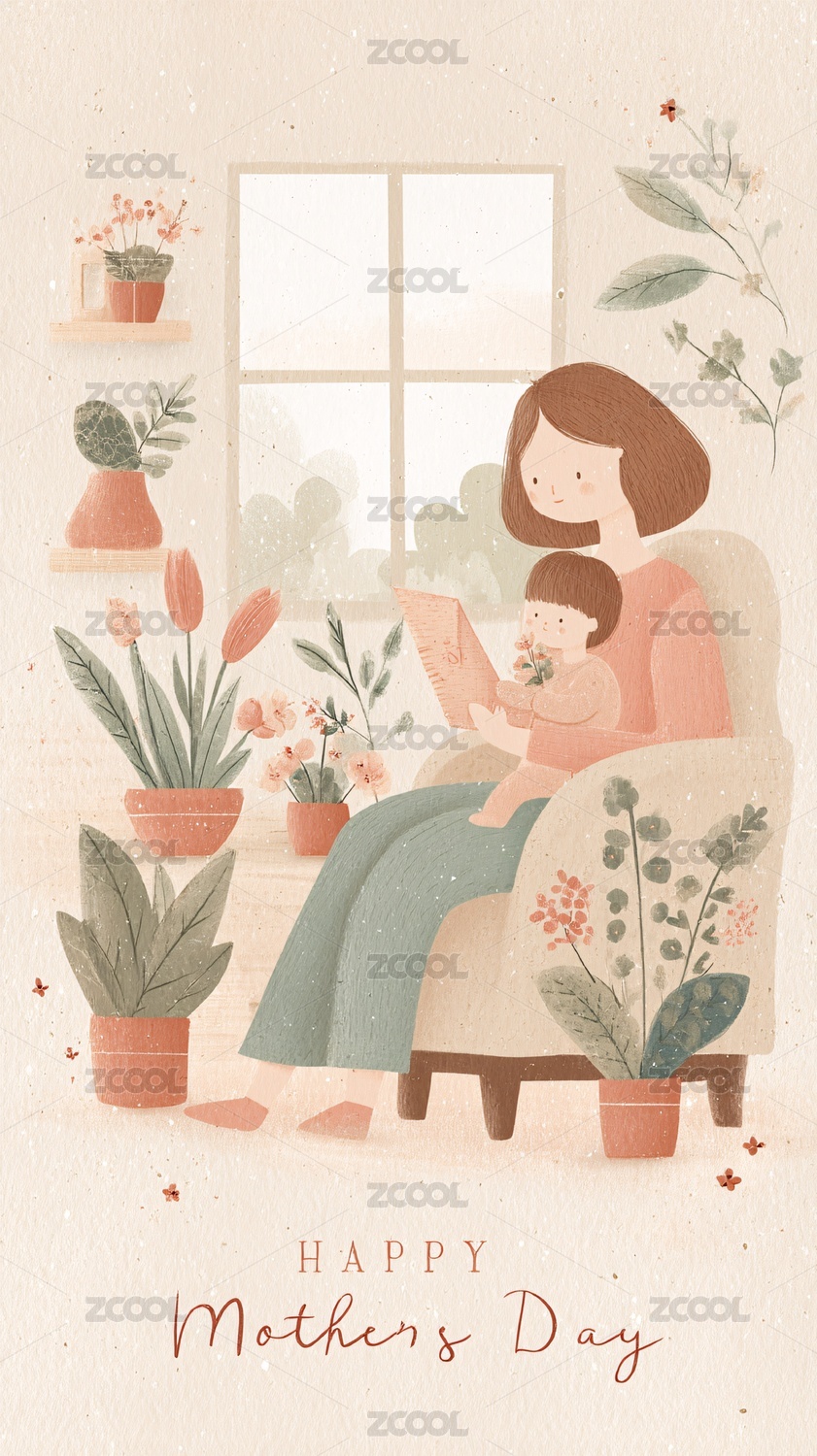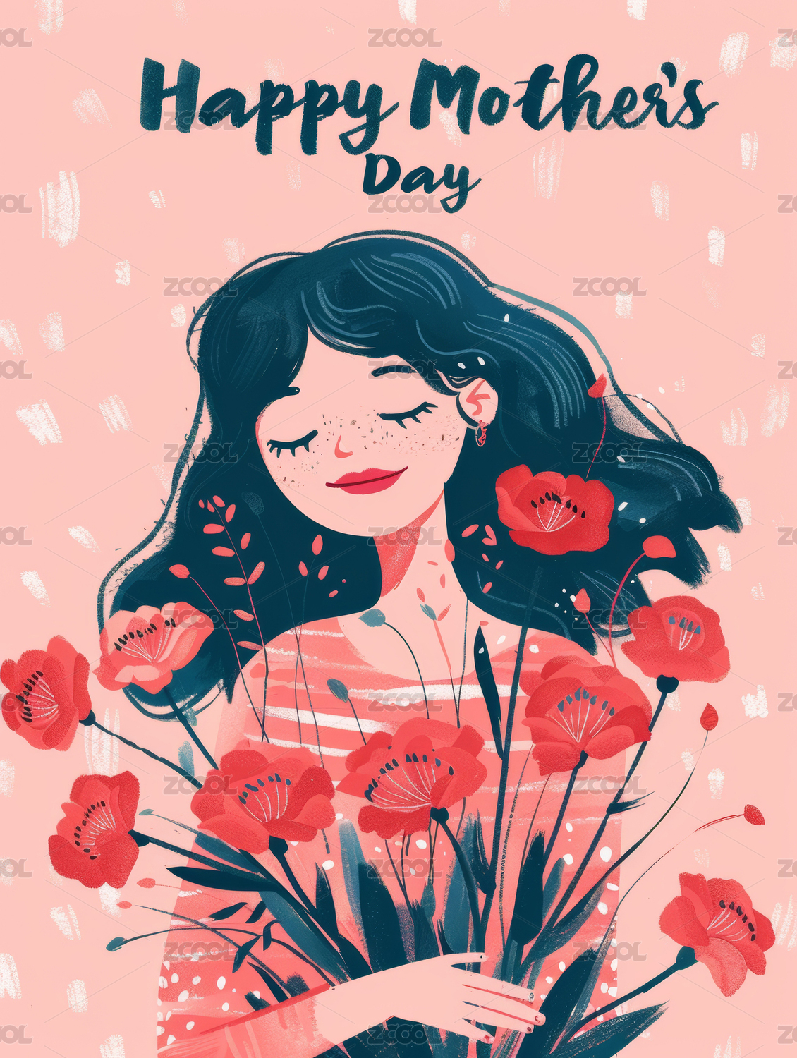 母亲节抱着宝宝的妈妈被鲜花簇拥