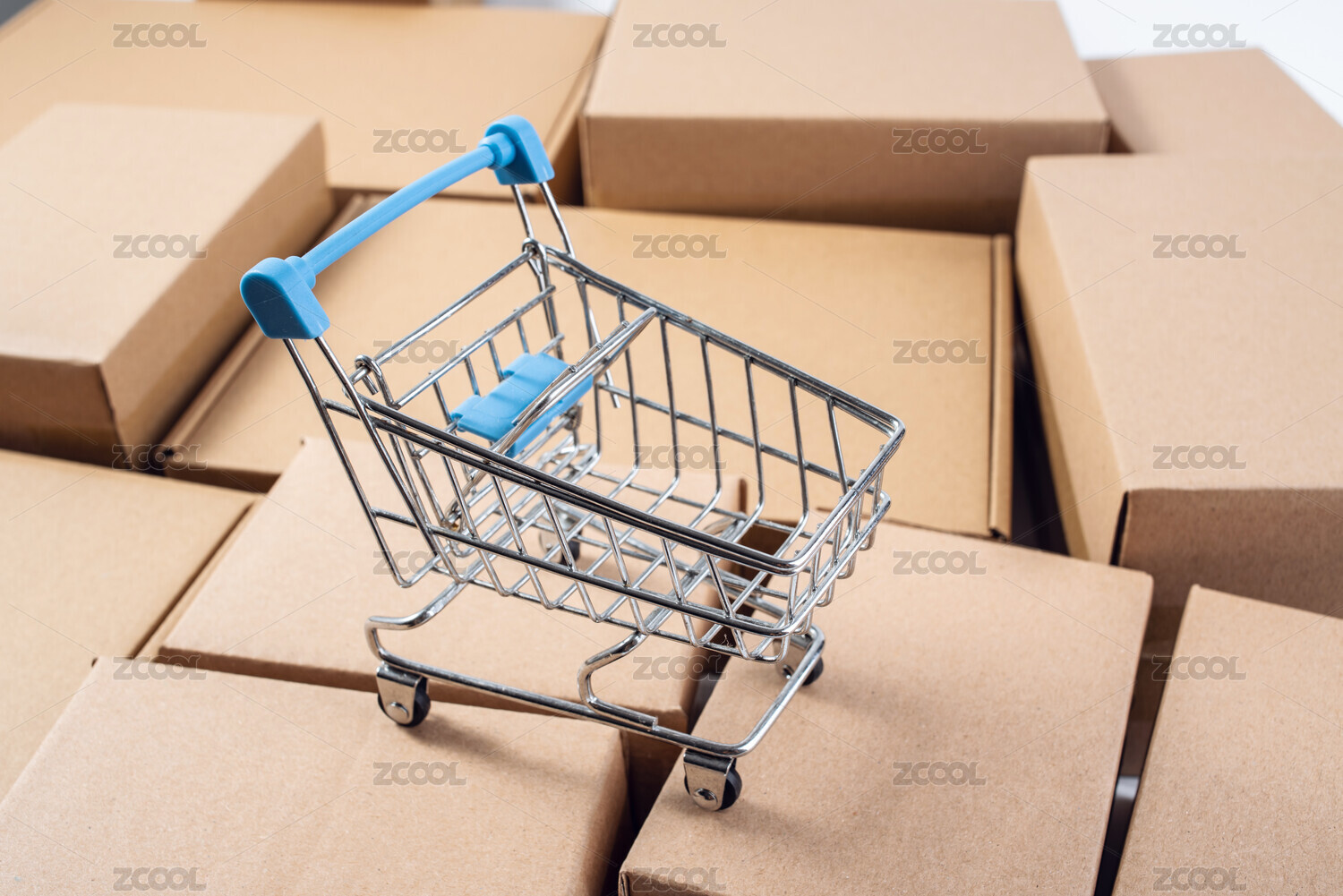 购物,网购,购物车,电商,概念,素材,无人,纸箱,打包,快递