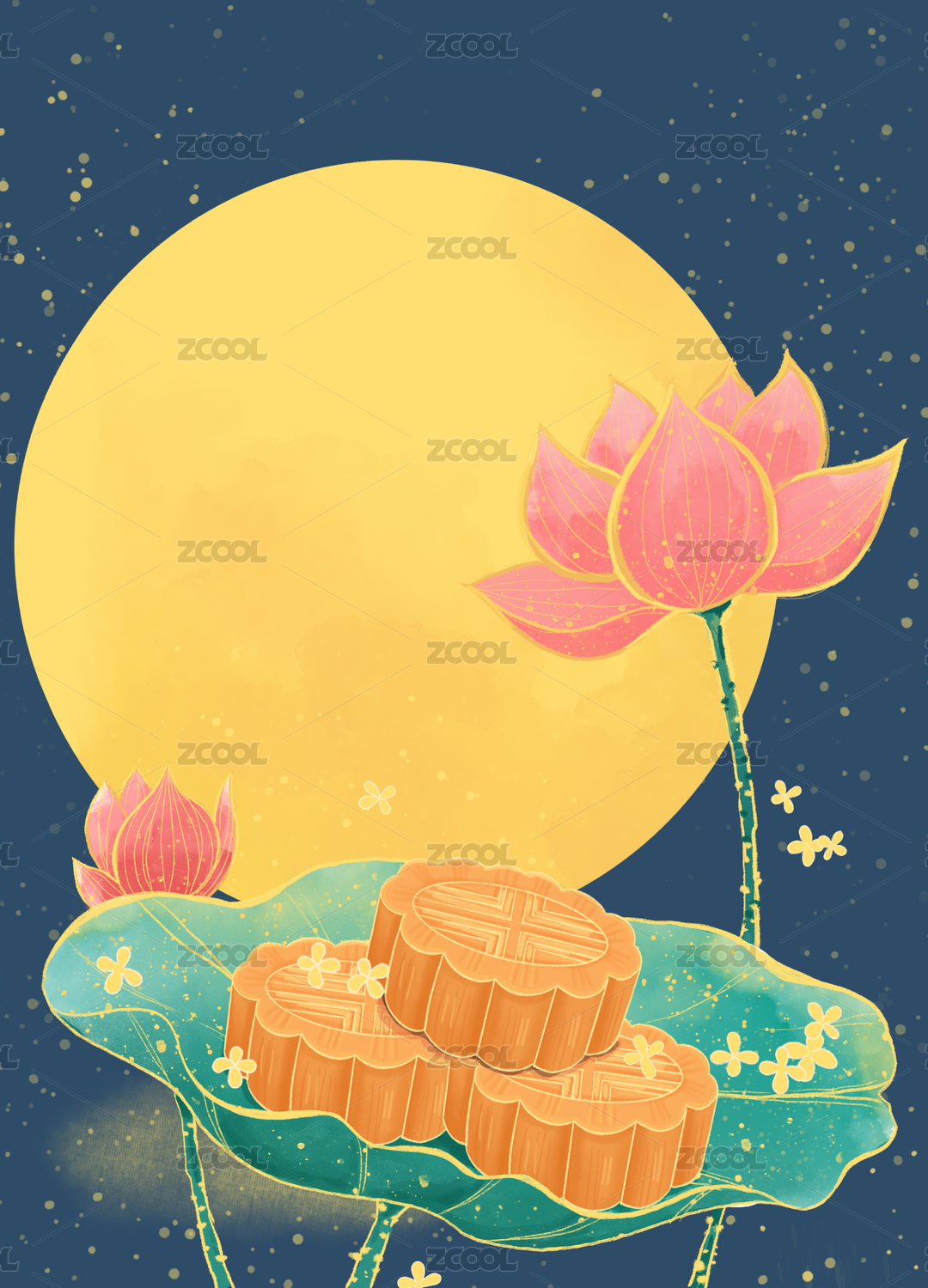 中秋节,中秋,秋天,传统节日,桂花,荷花灯,荷花,月亮,夜晚,月饼