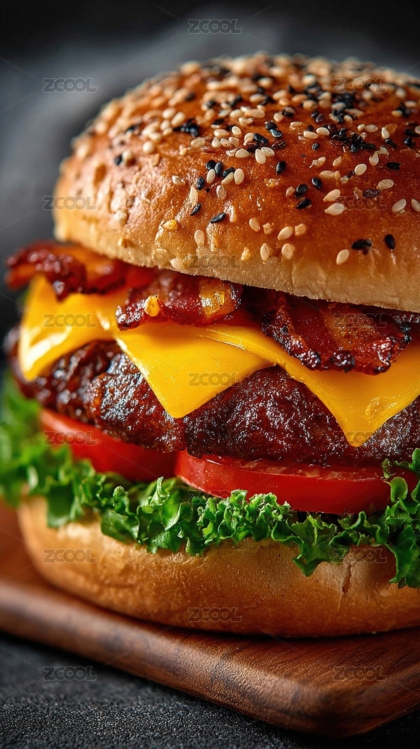 芝士培根汉堡特写