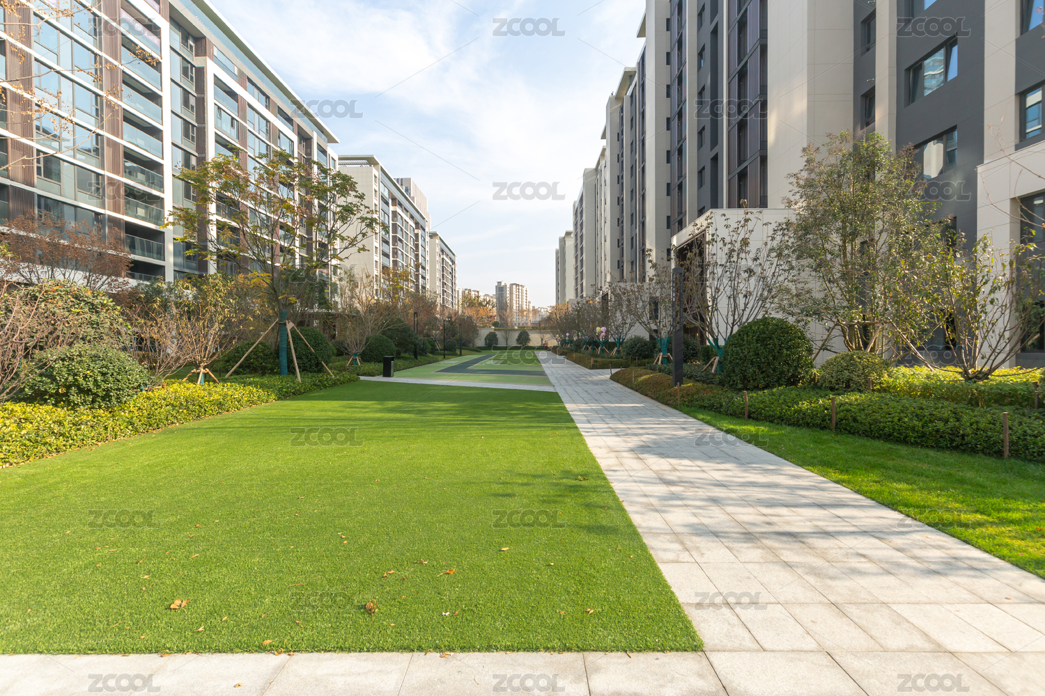 夏季白天商业住宅小区内部景观