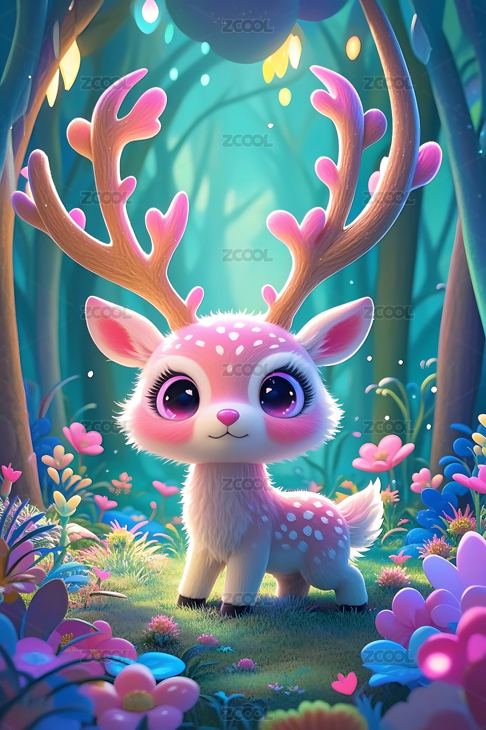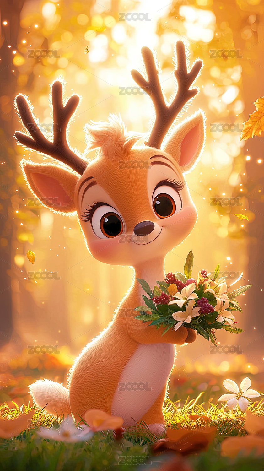 梦幻森林里的可爱小鹿