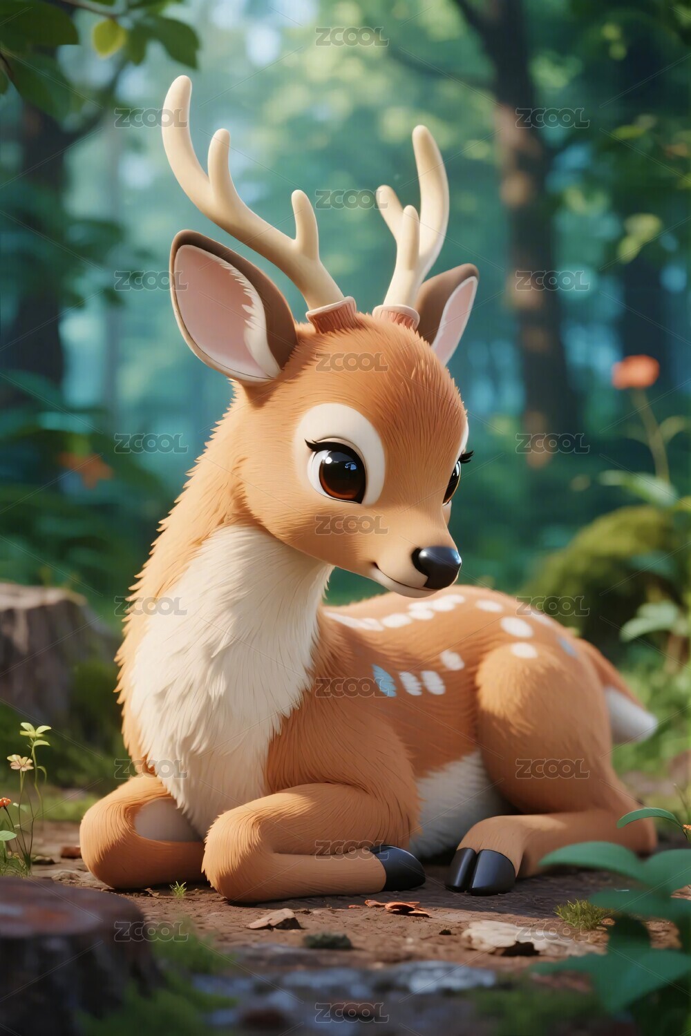 3D可爱林间小鹿休息