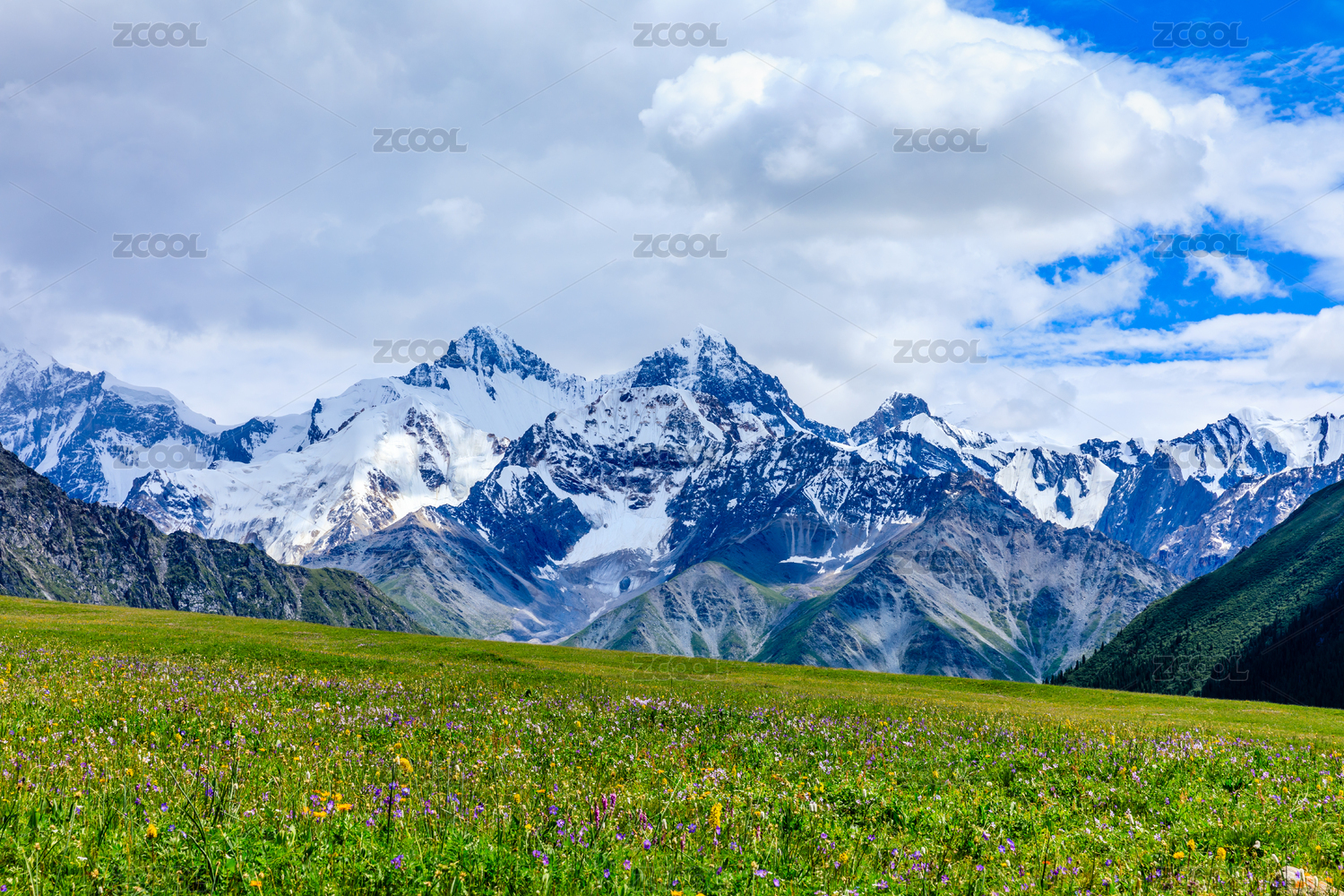 四川甘孜藏族自治州夏天草原山水雪山自然风