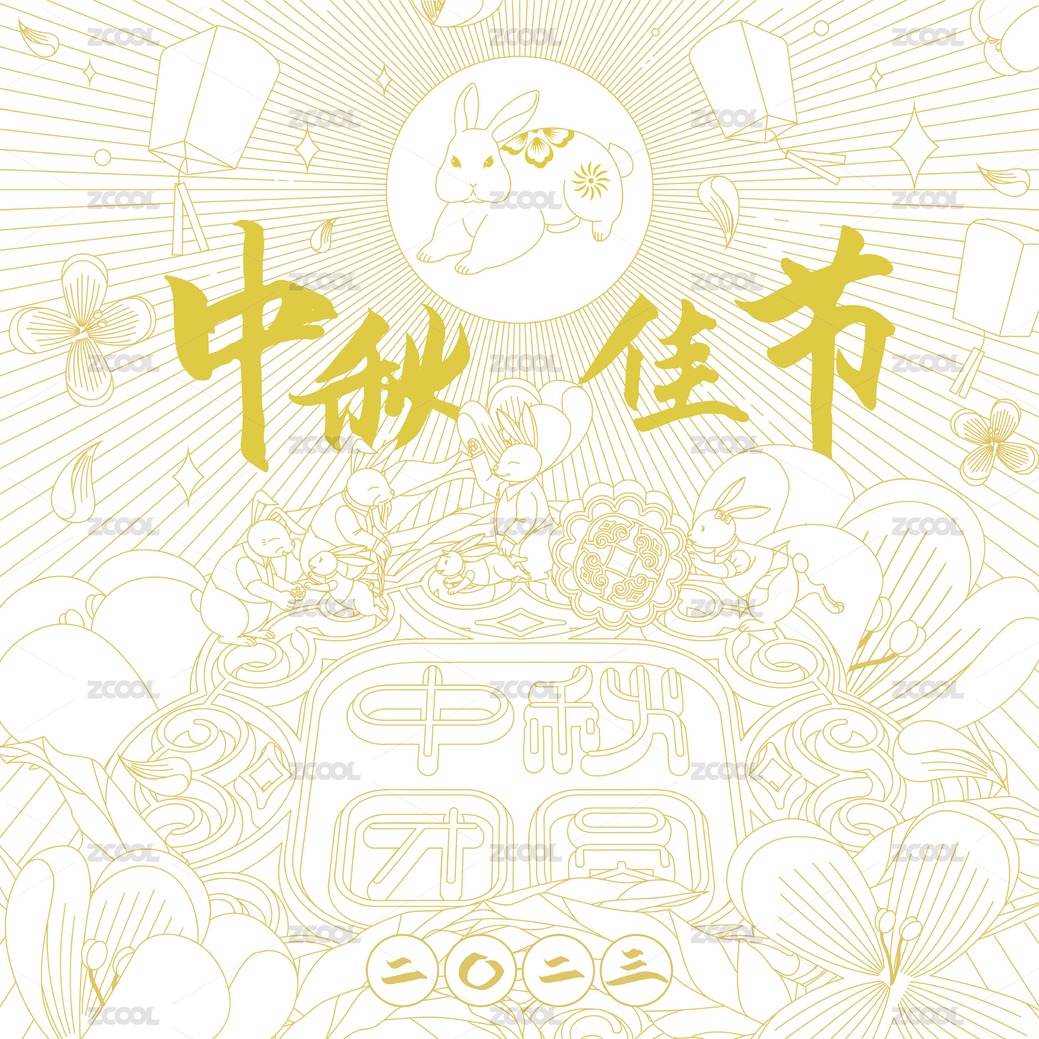中秋节新中式剪纸风圆月白兔月饼竖版有字