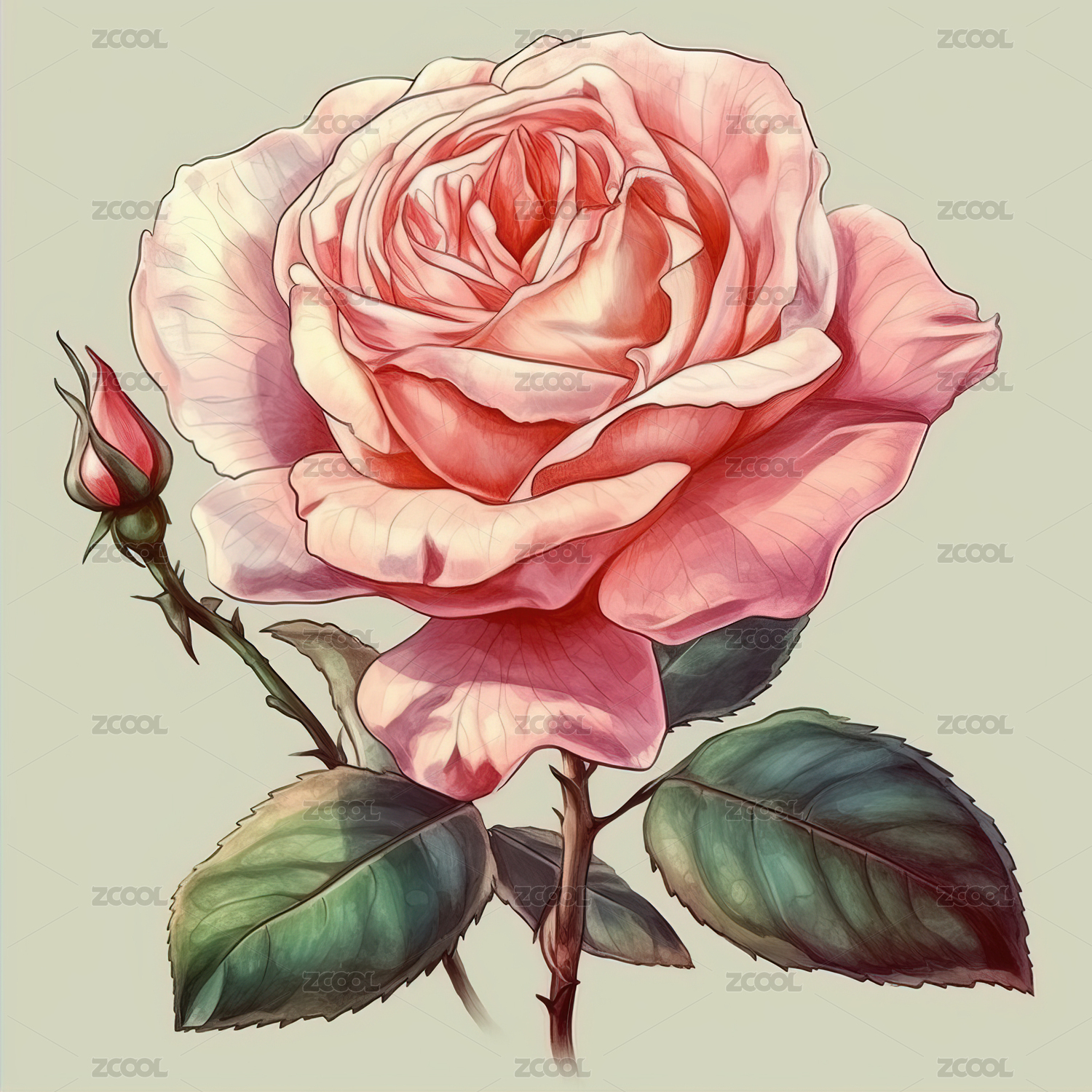 粉色玫瑰唯美浪漫手绘花卉插画背景素材