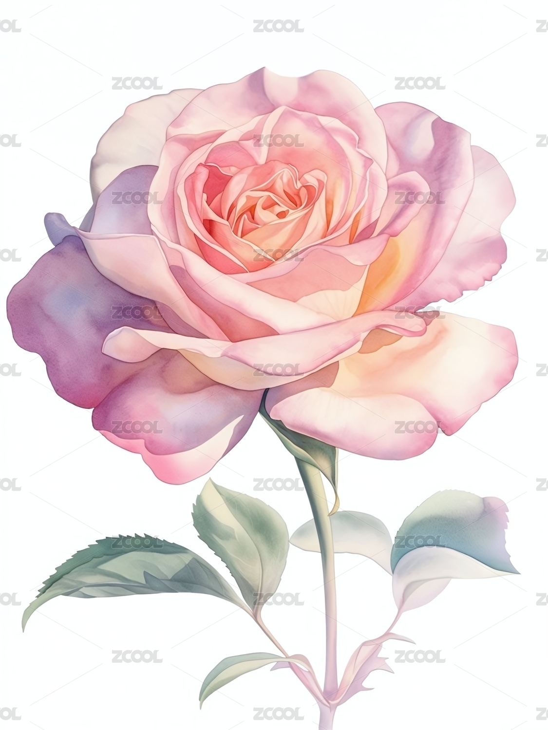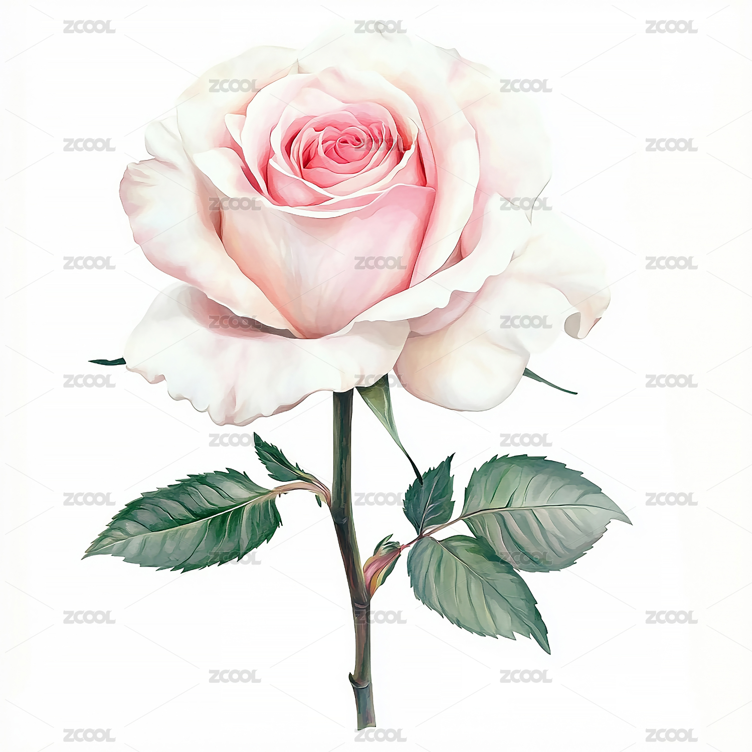 水彩,白玫瑰,玫瑰花,花朵,花卉,插画