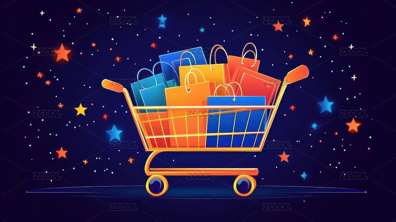渐变色电商购物车购物插画