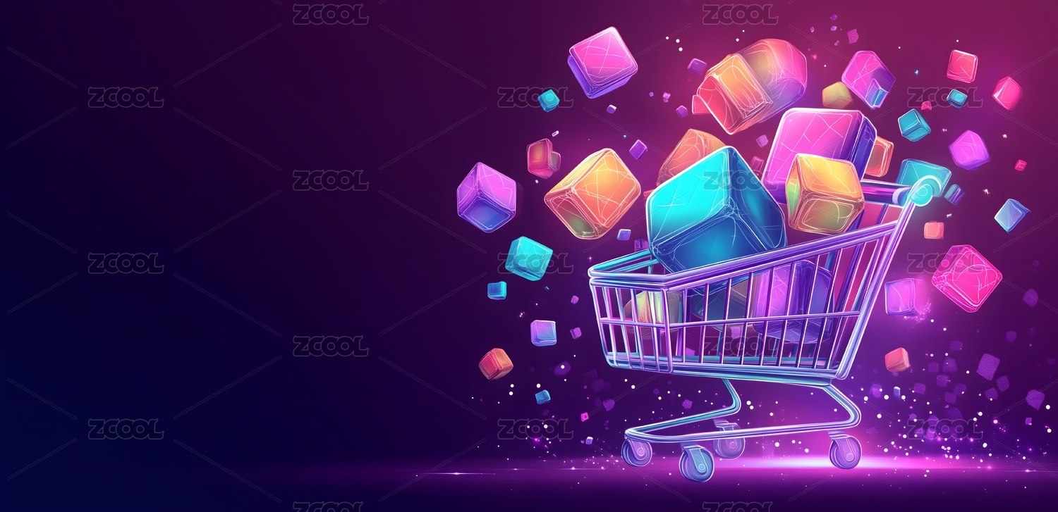 渐变色,电商,购物车,购物,插画,礼物盒,装饰,紫色,唯美